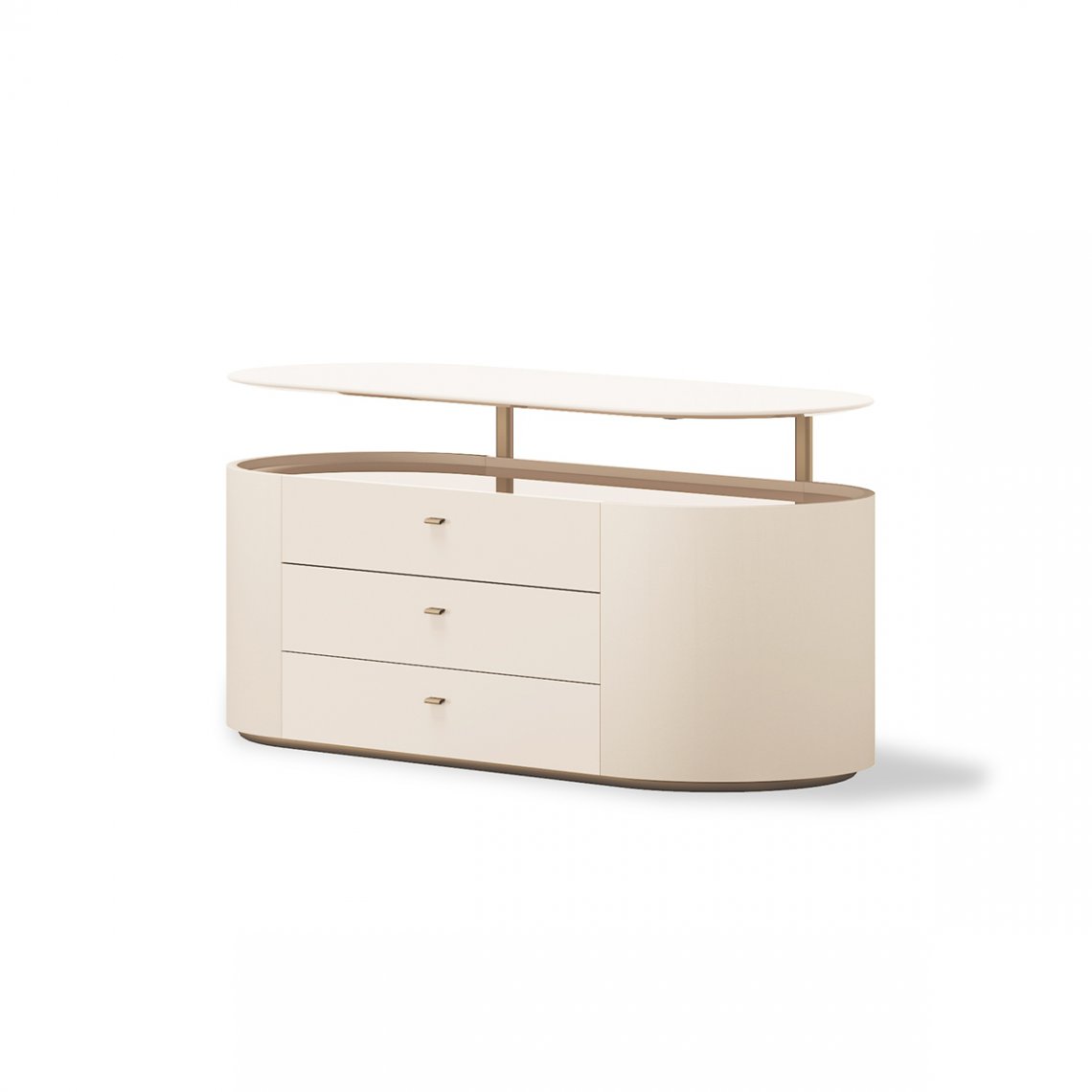 The Roma chest of drawers is an elegant element dedicated to the sleeping area. The sides are covered in leather, the handles are created with elegant straps also in leather. The Roma chest of drawers is available in the version with four drawers or with shelf. The Roma Roma chest of drawers is available in different finishes as per sample card.