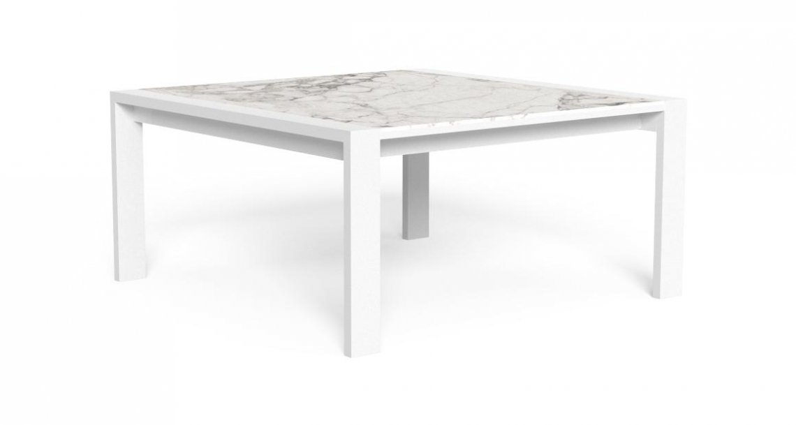 Il piano quadrato del tavolo da pranzo 157×157 Argo Alu può ospitare fino a 8 persone. La struttura in alluminio solida e stabile, sorregge un pianale in gres disponibile in molteplici varianti di colore.