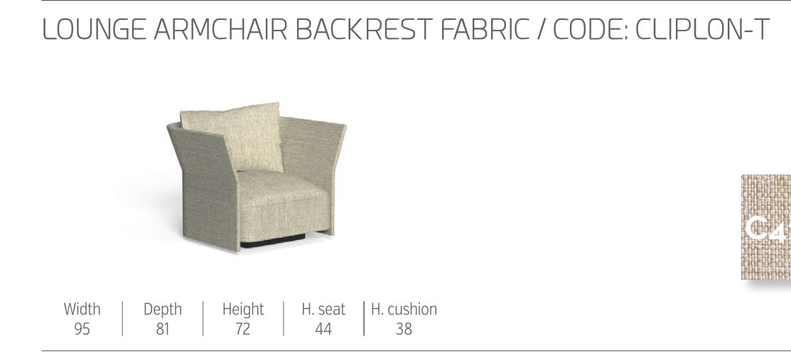 La cuscineria è sfoderabile, l’imbottitura realizzata in quick dry foam e rivestita con tessuti pensati e realizzati per l’outdoor impermeabile, facile da lavare e resistente agli agenti atmosferici.