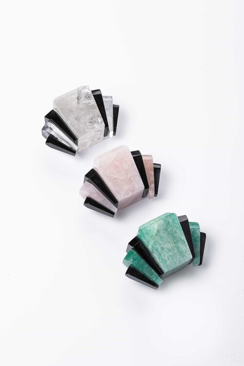The delicate shade of pink quartz is exalted by the contrast of the black obsidian. A jewel detail that embellishes this hexagonal shaped casket box in a perfectly Art Decò style and yet with a contemporary design. Each piece is hand-cut and therefore unique. Available in three sizes.