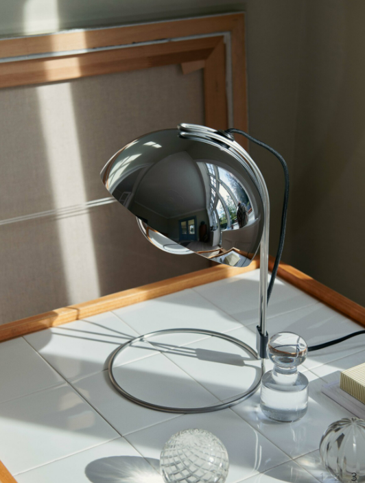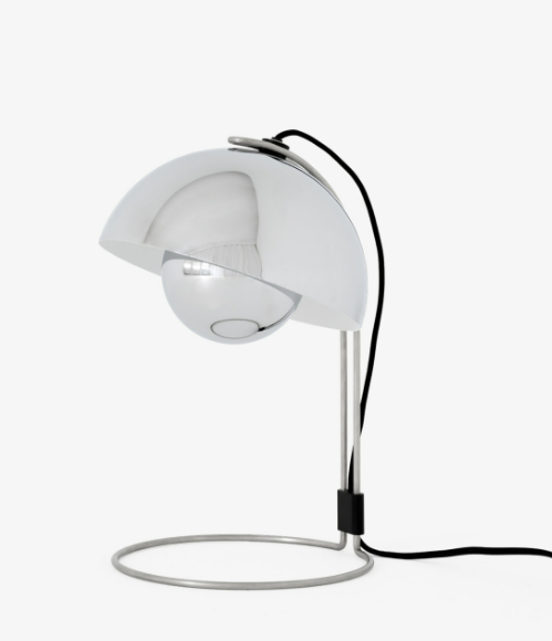 Among the most norm-breaking Danish designs of the 1960s, the iconic form of Verner Panton's Flowerpot is available in a series which now consists of seven different models.  The uniquely designed VP4 model adapts the form of the Flowerpot into a stylish table lamp.
