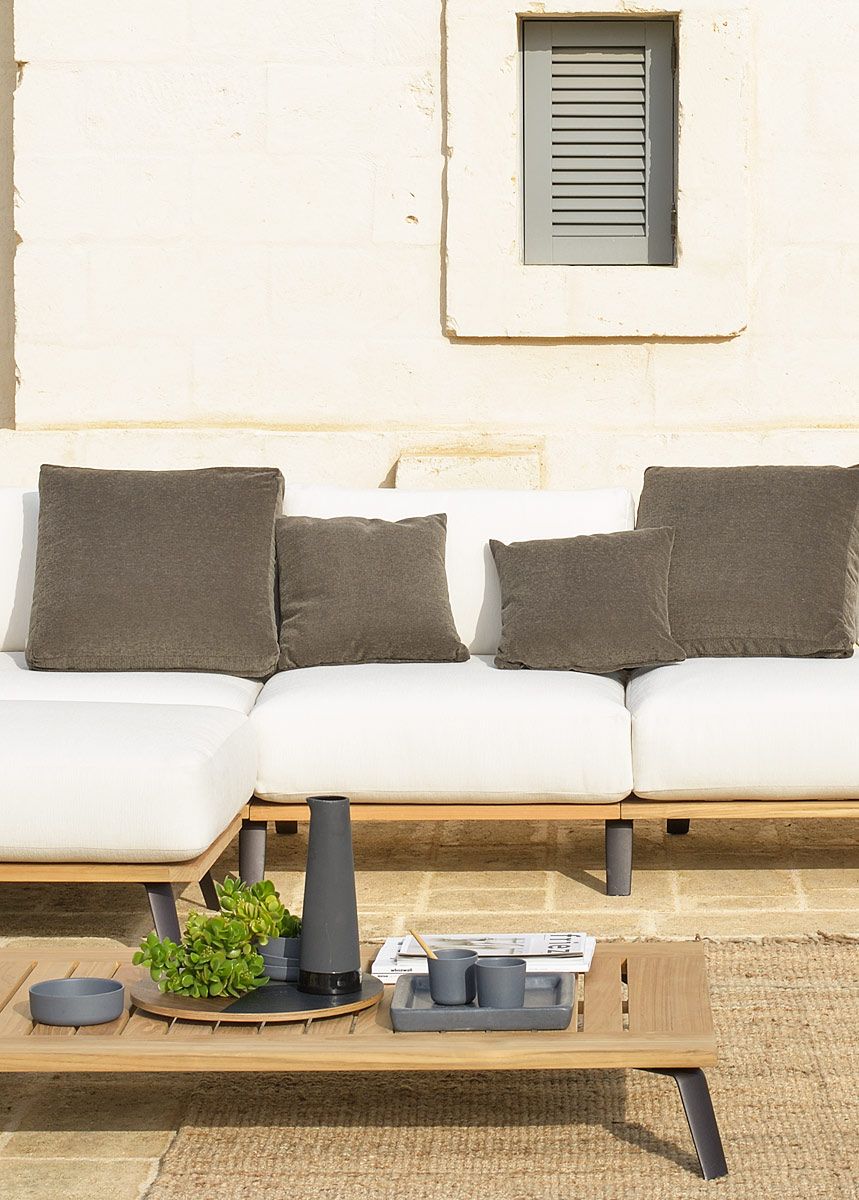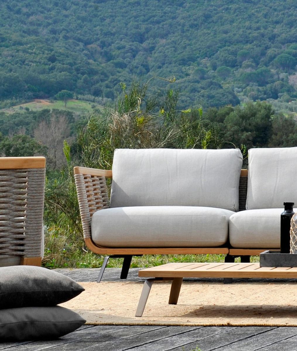 在 Welcome 模塊化系統中,結構的柚木板條按照古老的工藝蒸汽彎曲,可以用手工編織的繩索覆蓋。
