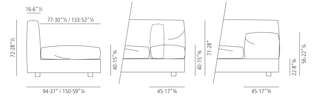 835 Evosuite is an extremely customizable sofa; it can be combined into numerous variants by choosing single elements with different sizes along with corner and end elements and completely reclining backrests that can be freely joined together. Cushions of different sizes also available.