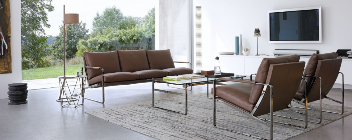 Precise metalwork and high-quality surfaces. The armrests and supporting structure frame the slide-in seat, resulting in a feeling of lightness and a streamlined shape. The range of armchair, sofa and table is designed for lounges, lobbies, and living rooms.