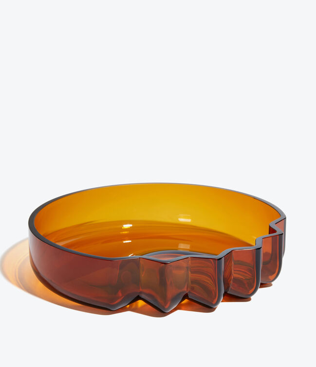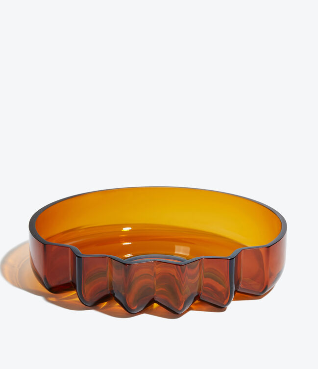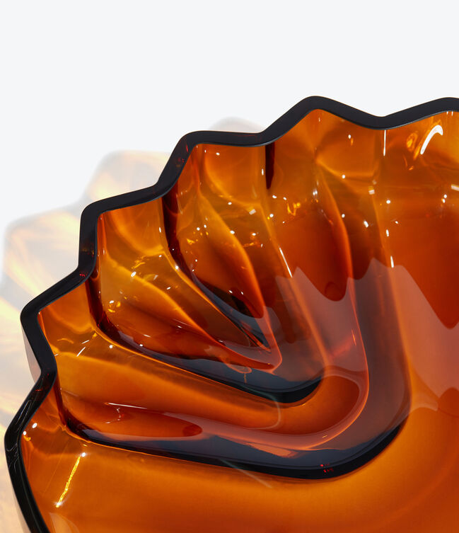 PULSE Platter - polished blown glass - undulating in a horizontal gradient along a portion of the circumference.