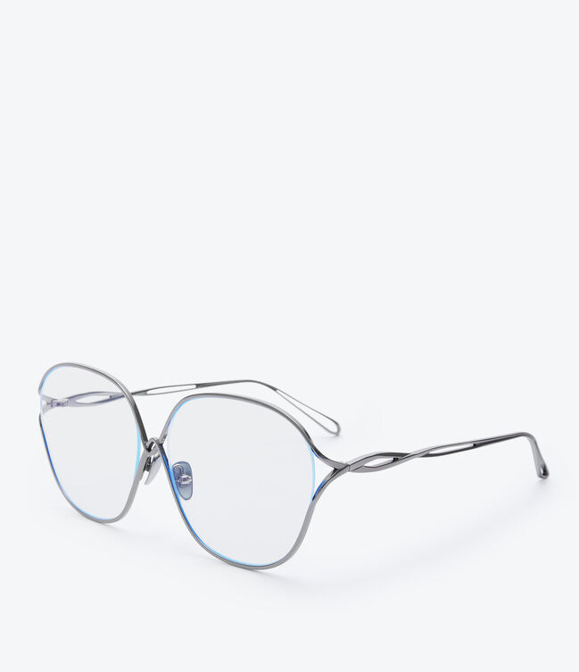 INFINI Eyewear - cast hand-polished stainless-steel frame with tinted lens and bespoke pouch.