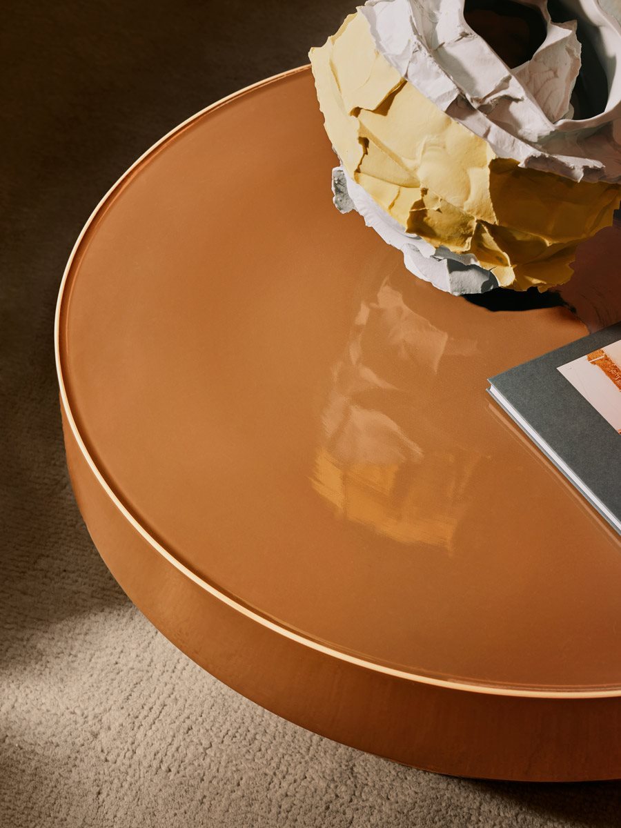 Philippe Malouin was inspired by a particular detail of the ceramic craft process: the unglazed base of the vases, due to contact with the kiln walls during vitrification. This characteristic element, usually considered a side effect of production, has been elevated to a distinctive detail in the Ta.Ba.Ce collection. This stylistic choice creates a play of textures and contrasts, emphasising the contour lines of the tables and giving them a unique and recognisable identity.