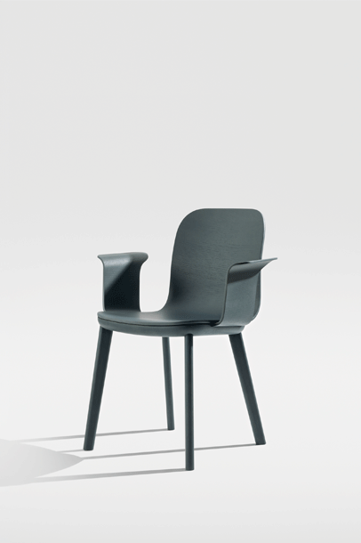 AEON COMFORT is ready to take off. The armchair celebrates the interplay between volume and surface. Masterfully blending the flexibility of a moulded wood shell with the stability of a solid wood frame. This fusion not only creates a harmonious design but also achieves an optimal balance between form and function: tactile precision meets human-centric design. The solid wood construction supports the curved seat shell and the wing-like armrests with remarkable lightness, enhancing a high level of comfort and freedom of movement for every user.
