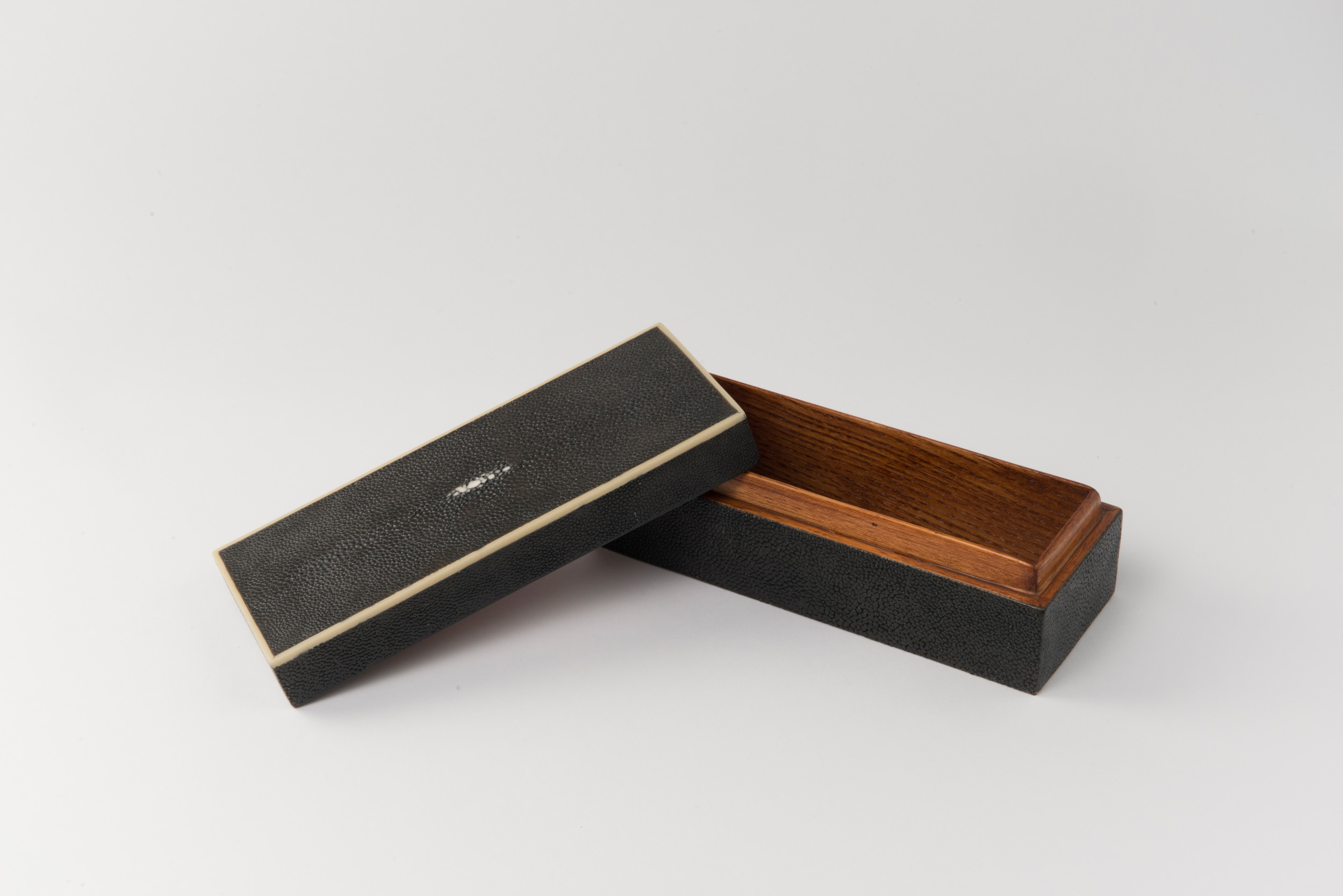 This classic shoe-style box is a luxurious update to the everyday staple accent.