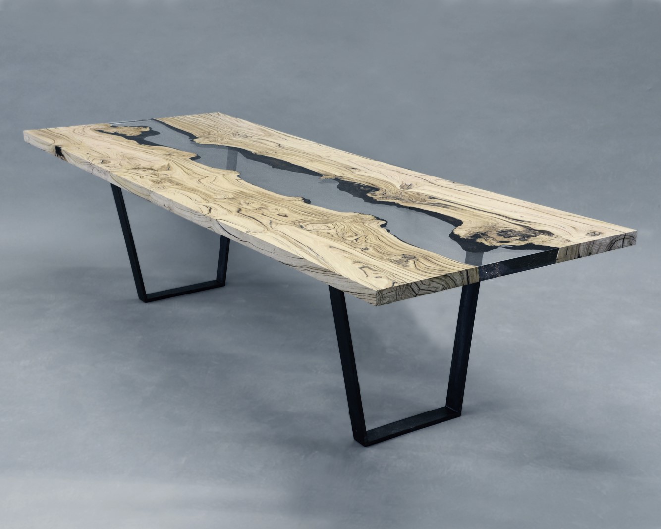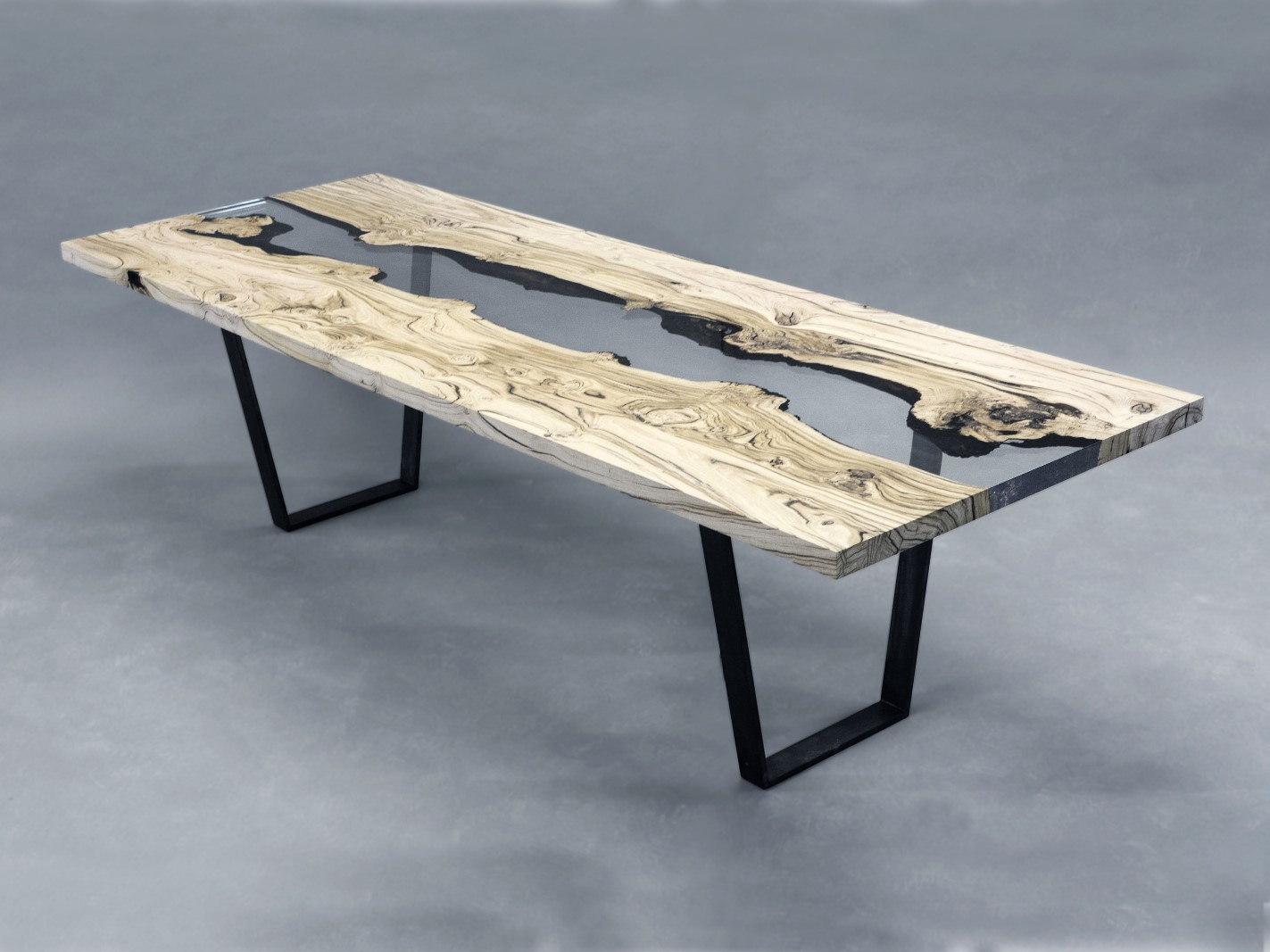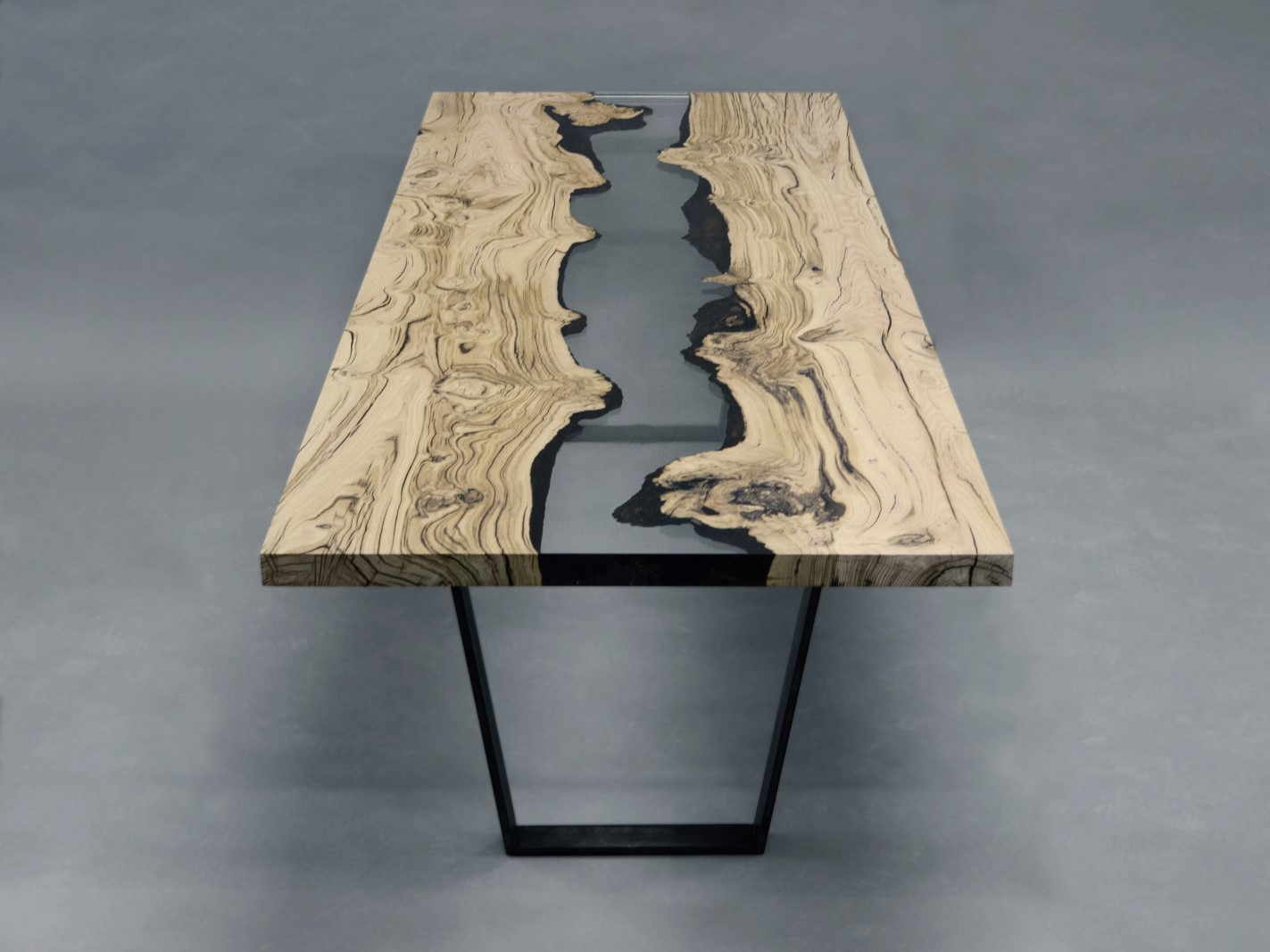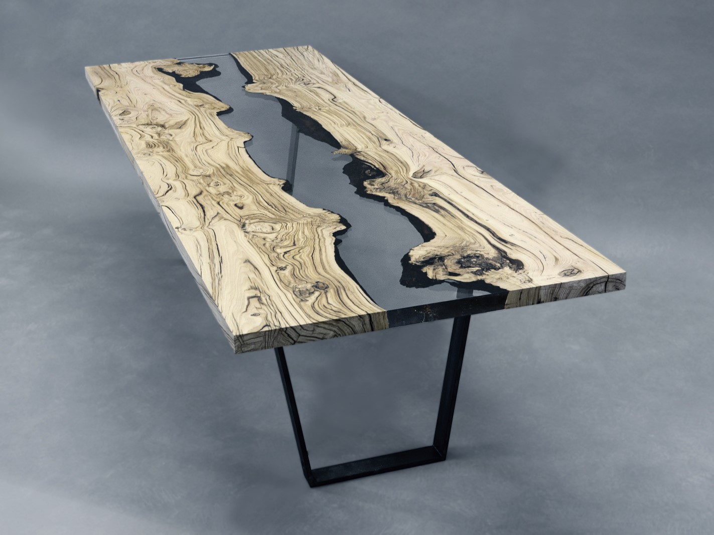 Natural Wood surface not covered by resin on the section planes. Selective wood coating with matt natural effect.