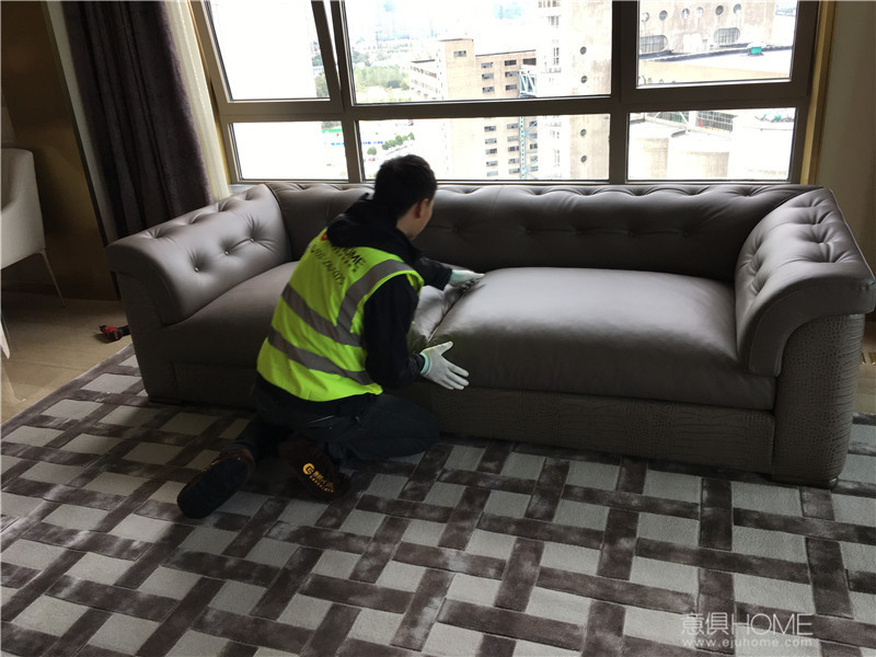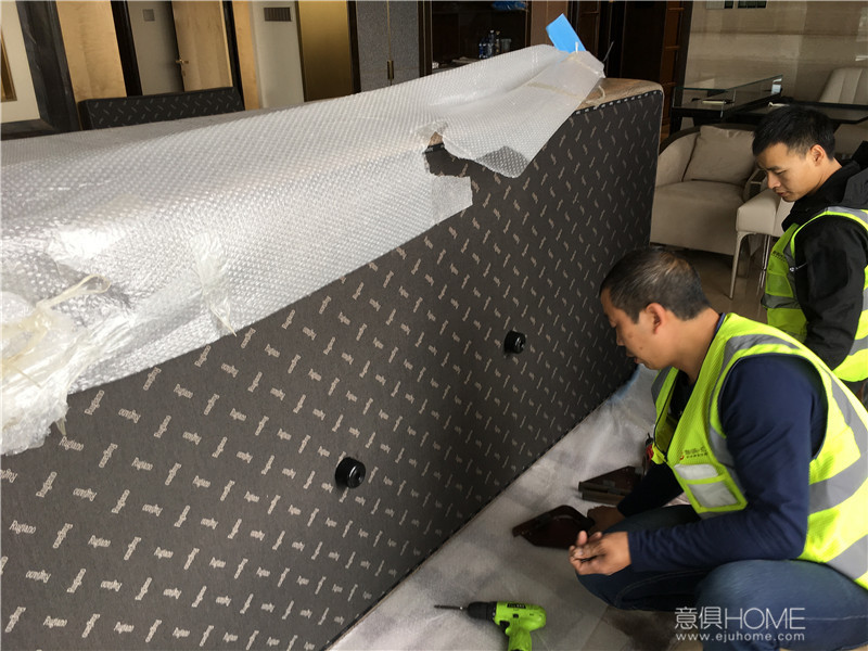 意俱師傅正在拆FENDI ASJA床尾凳的包裝。