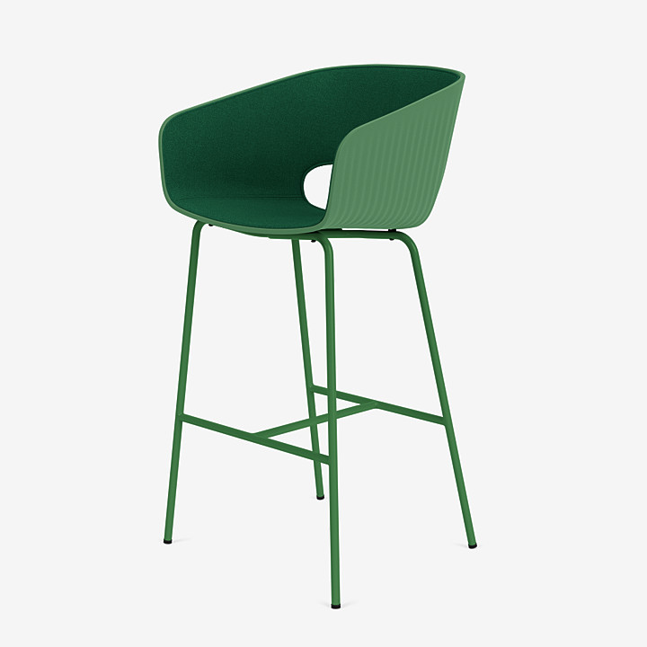 Marée 403 酒吧椅適合高度約為 105 厘米的桌子,非常適合廚房、餐廳或酒店的酒吧。椅子高107厘米,座高76厘米,深51.5厘米,寬55.5厘米。它可以作為軟殼椅或帶座椅軟墊、內側或全軟墊的座椅。碗形外殼由模制再生塑料制成。只能在室內使用。外殼有八種蒙大拿州顏色:燕麥色、蘑菇色、琥珀色、甜菜根燧石色、歐芹色、無煙煤色和黑色。