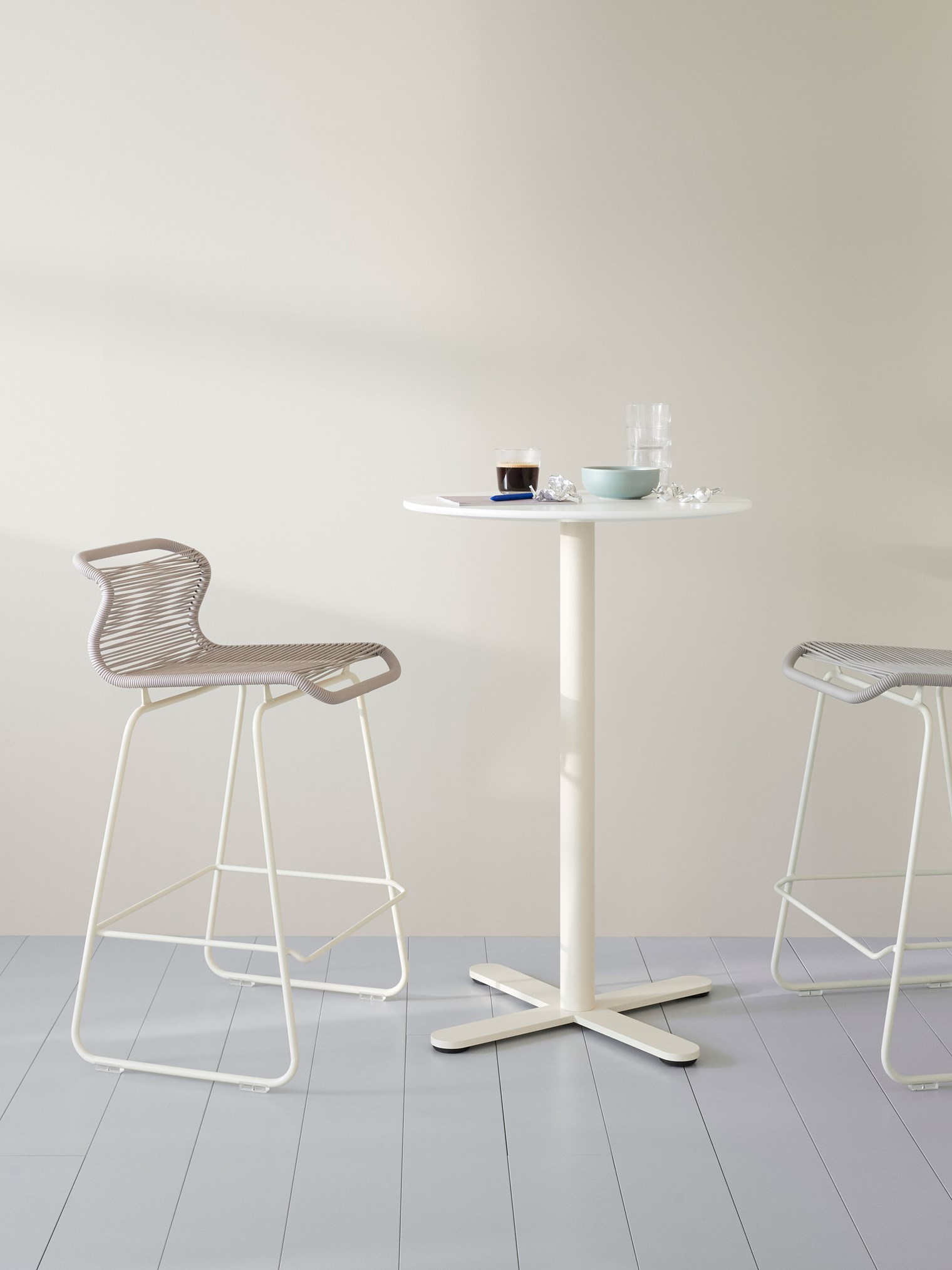 Panton One Bar 適合高度約 1 米的桌子。105 厘米,因此非常適合用作廚房、露臺或餐廳的吧臺椅。這款輕質椅子有以下顏色可供選擇:Duke、Holmes、Clark、Vincent、Carmen、Marylinn、Marcel 和 Scarlett,以及自然色和黑色的紙繩。Panton One 椅子在網上展示,配有不銹鋼框架,但也可以在距離您最近的蒙大拿州零售商處選擇其他框架顏色,如米色、絲灰色、黑紅色、黑色和鉻色。不銹鋼框架的變體也可以在戶外使用。不過,帶紙繩的座椅不適合戶外使用。