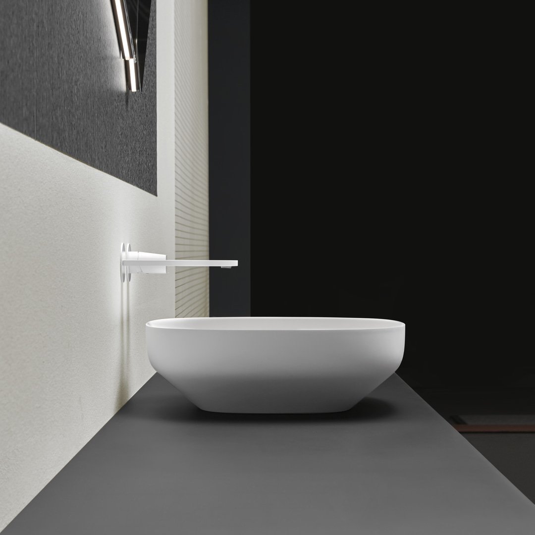 Sfrutta le straordinarie potenzialità dei Solid Surface e delle pietre, presentando uno spessore ridotto e una forma quanto mai attuale generata dall’unione tra linee rigorose e morbide curve. Ago è il lavabo soprapiano dalla forma scultorea, nel quale il volume che si restringe verso la base ovale definisce un bacino capiente e profondo. L’immagine moderna e trasversale lo rendono perfetto per inserirsi in qualsiasi tipologia d’arredo.