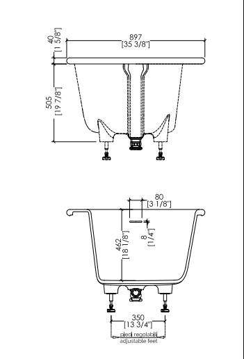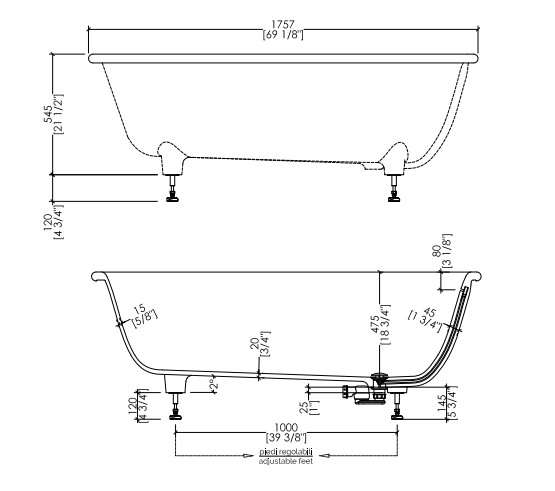 Should you require pre-drilled holes for a deck-mounted tap, please specify the position (centered, right or left) as well as the tap model (we are only able to pre-drill holes for Devon&Devon deck-mounted taps). Please contact us to verify the compatibility of taps from outside brands. Drain with cover in White Tec Plus and siphoned trap assembly included.