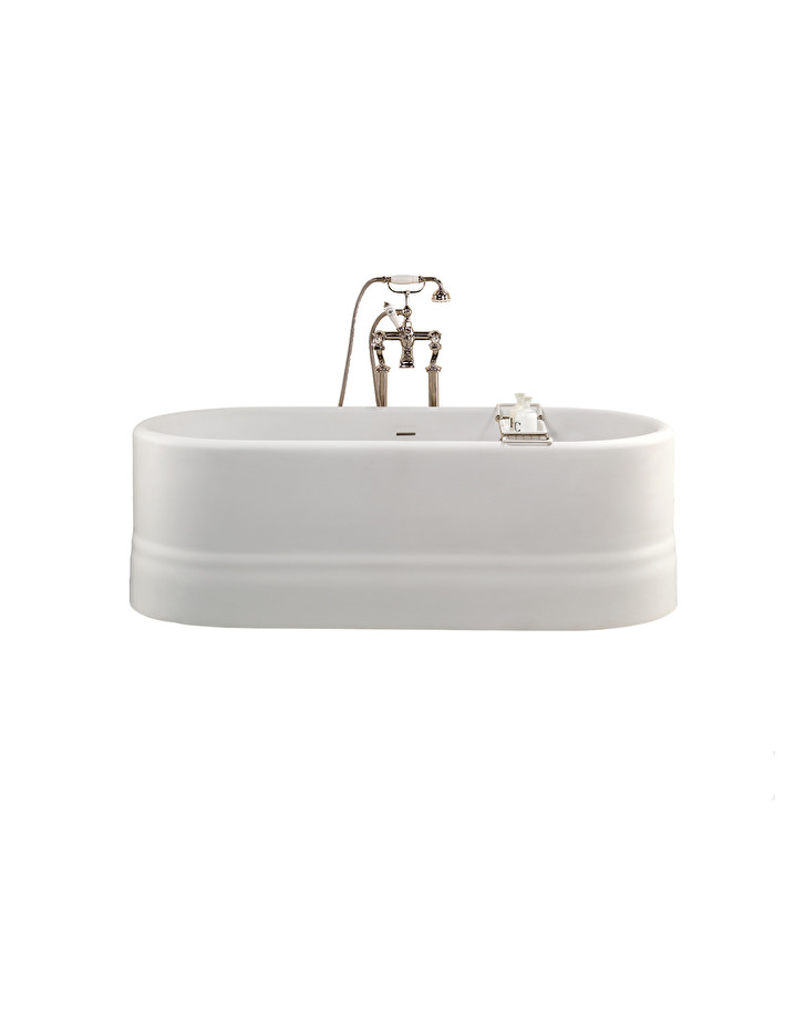 Being available in a rich range of colours, Diva is a freestanding retro-inspired bathtub caractherized by a great harmony of proportions. The elegant solidity of its design inspired by the Forties is refined by a light moulding that completely envelops its central part and emphasizes its sculptural imprint. The bathtub body is in White Tec, an innovative composite that guarantees excellent impact or mark strength and compliance with the highest standards in terms of quality and sustainability.