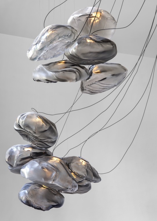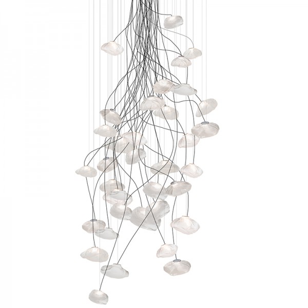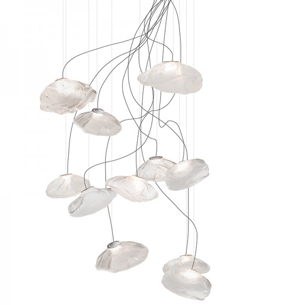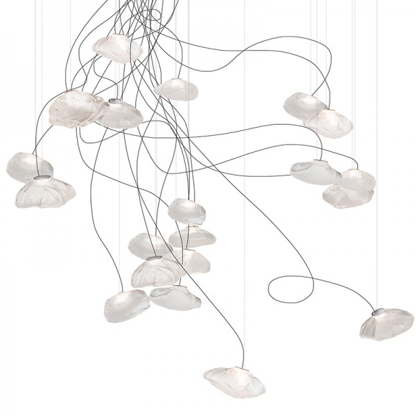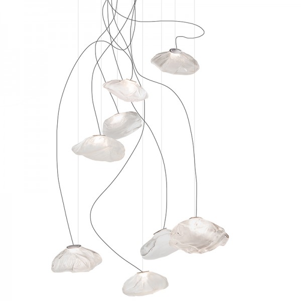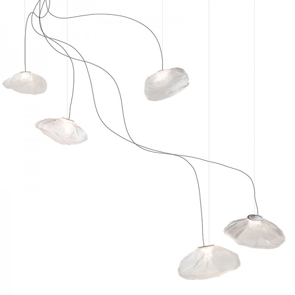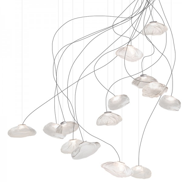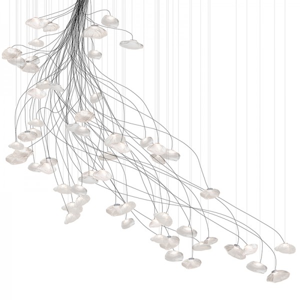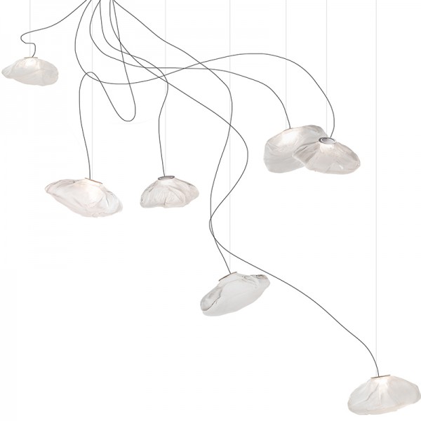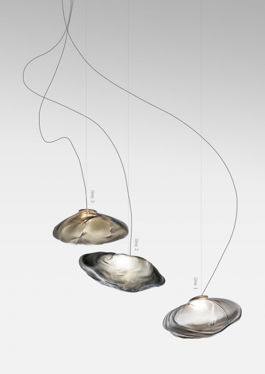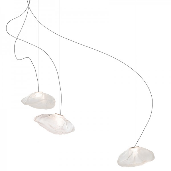 The 73 semi-rigid is a flexible suspension system enables pendants to be nestled in close-knit groups or loosely composed in a wider field, allowing each piece to be perceived individually.