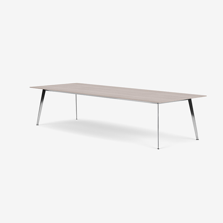 這款 JW 桌子是一款大型矩形桌子,既適合大型餐廳,也適合專業(yè)會議室或會議室。它的尺寸為長 320 厘米、寬 120 厘米、高 74 厘米。桌子輕薄但穩(wěn)定。框架置于桌面下方,三角形桌腿略微向外傾斜,優(yōu)雅簡約的桌子為腿部提供了最大的空間。該桌子有八種不同材質(zhì)的桌面可供選擇:雪絲層壓板、黑色和新北歐顏色的油氈、白橡木、燒橡木和黑橡木以及實(shí)心道格拉斯和實(shí)心橡木貼面。
