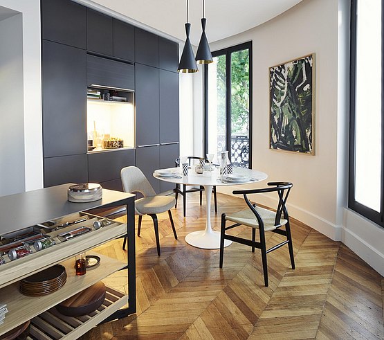 bulthaup b Solitaire forms the foundation for your living space, creating both a center of attention and openness. It was created to address your everyday needs. Positionable anywhere in the room and accessible from all sides, bulthaup b Solitaire brings living spaces, such as the living room and dining area, together.