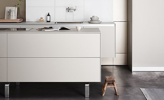 Foot-supported elements can accommodate any weight with ease. The island shares b3’s aesthetic sense of lightness.