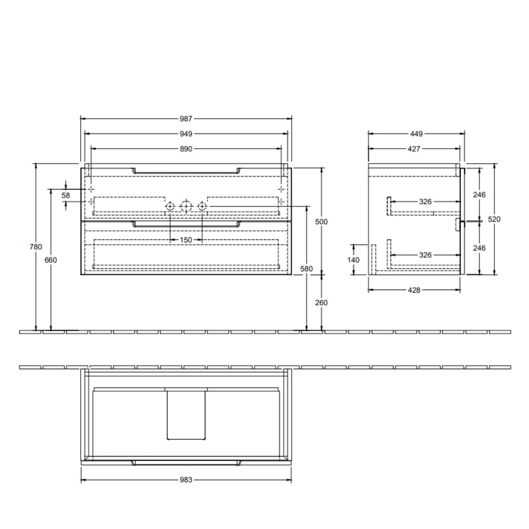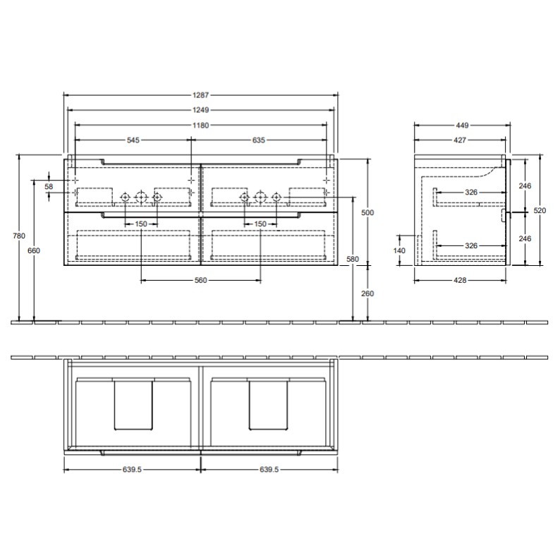 Vanity unit with storage space right under the bathroom sink