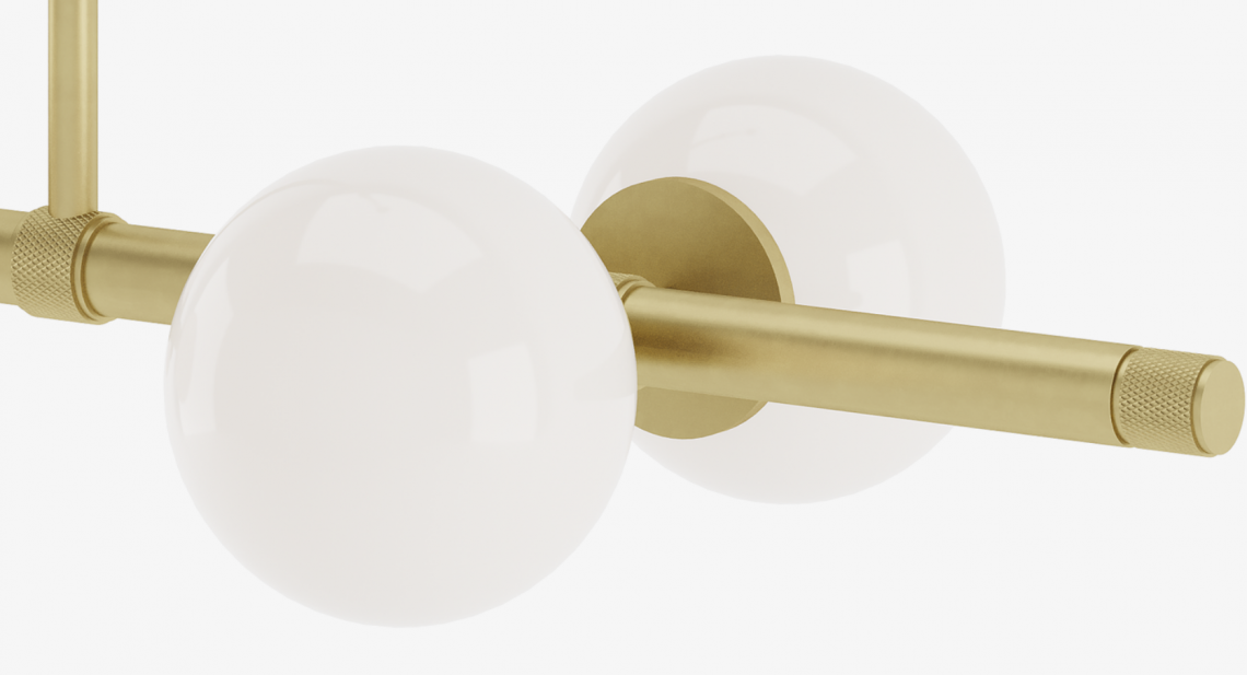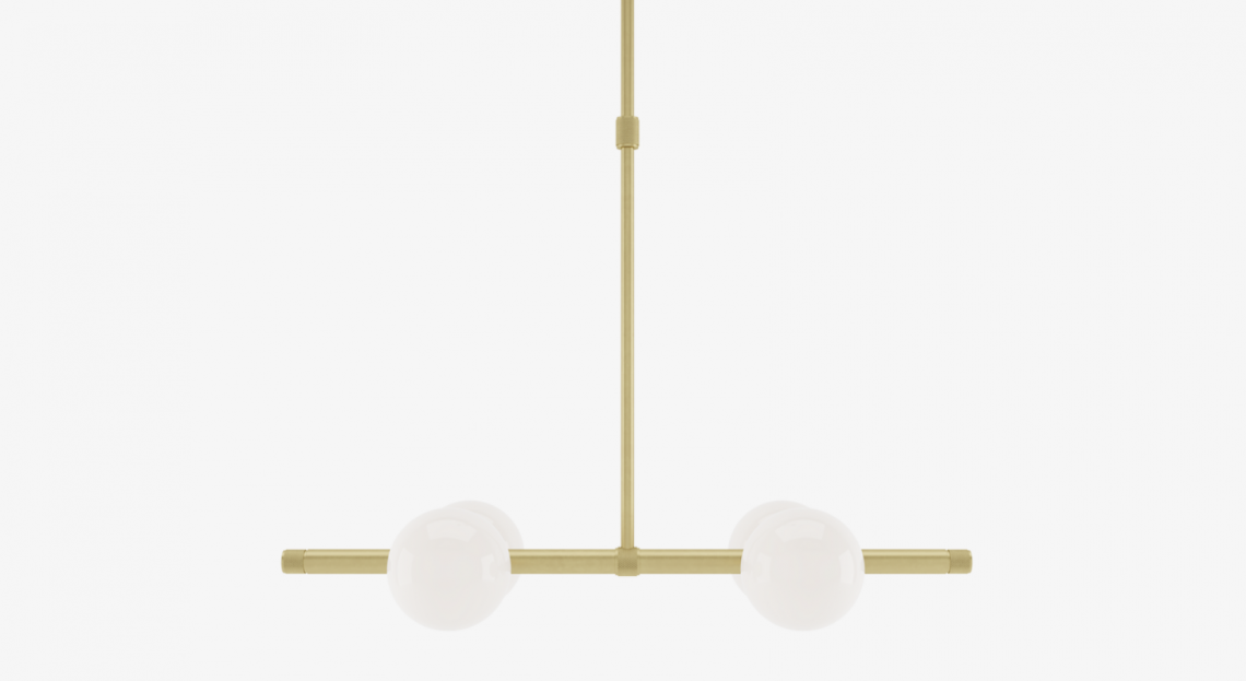 Suited to a multitude of spaces, the beautifully balanced LUND ceiling lamp features four opaline glass globes suspended from a brushed-brass structure, the height of which can be adjusted to best suit your needs