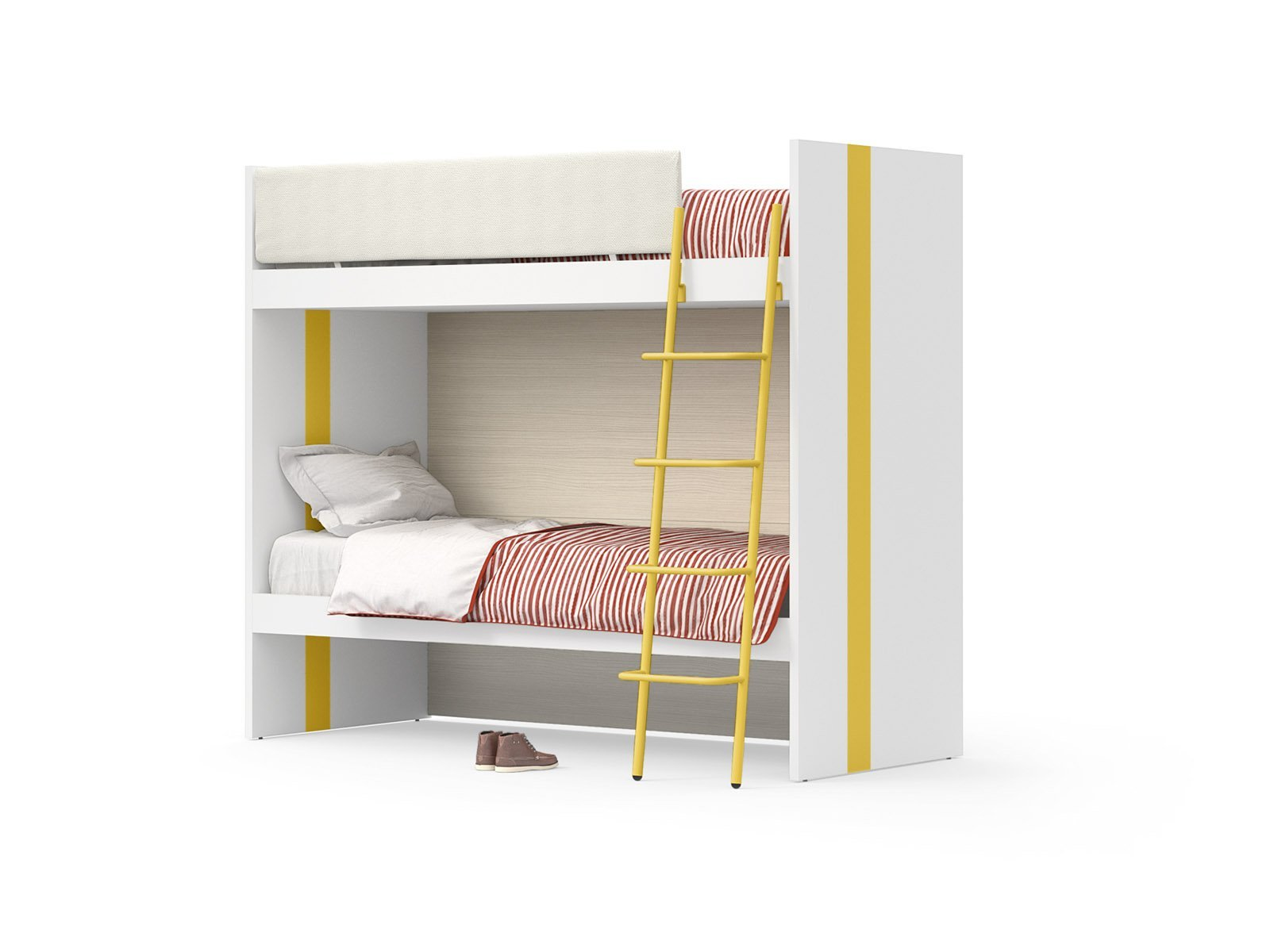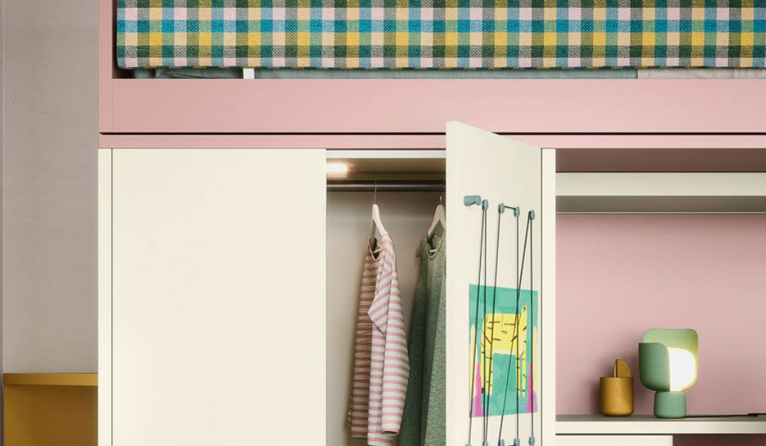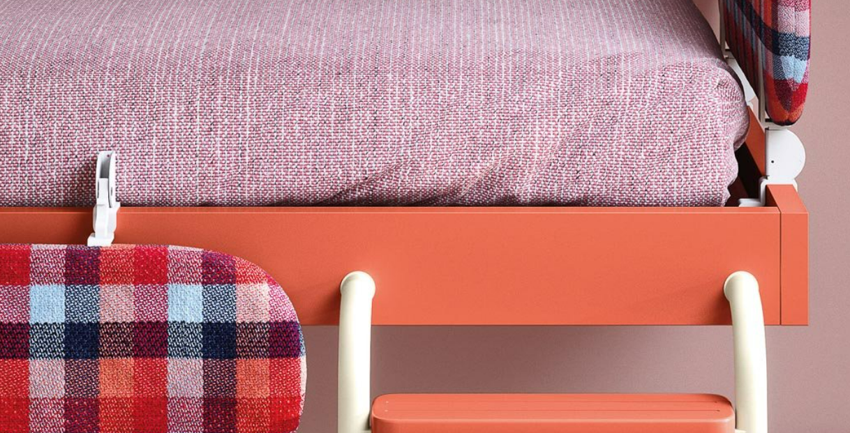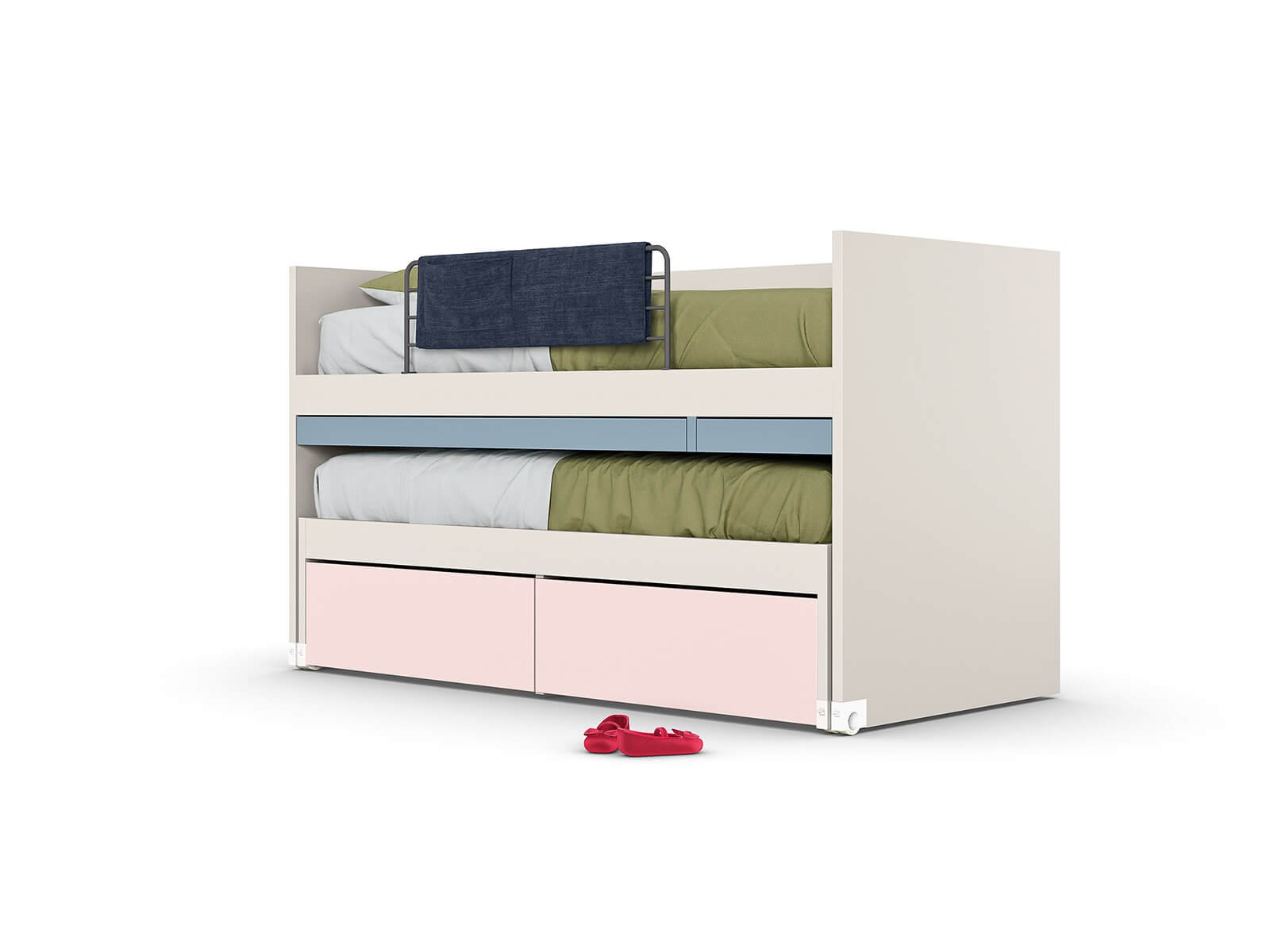 Con i suoi fianchi sagomati più larghi alla base, il ponte Tippy accoglie un letto, uno scrittoio o entrambi. E grazie al meccanismo, lo scrittoio lascia spazio al secondo letto senza dover spostare nulla.