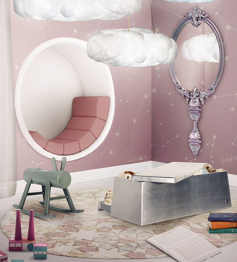 Silver Box is a luxurious kids’ toy box inspired by the fine silver bar shape. Inspired by the adventures of Scrooge McDuck, the richest duck in the world, this toy box is a useful storage solution for kids’ precious toys and secret treats.This exclusive toy box is built on wood, lacquered with metallic paint and has silver leaf finishes. It features a rotating cover and a secret compartment, for the most treasured kids’ goods.