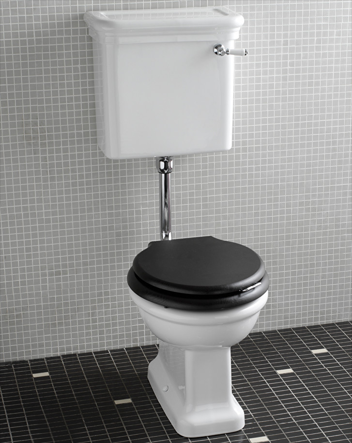 A w.c. pan for low level cistern in fine porcelain, characterized by a classic elegance inspired by the twentieth century. Its formal composure and the great harmony of proportions make it perfect for any context. It can be coordinated with a wide collection of seats of different materials and colours.