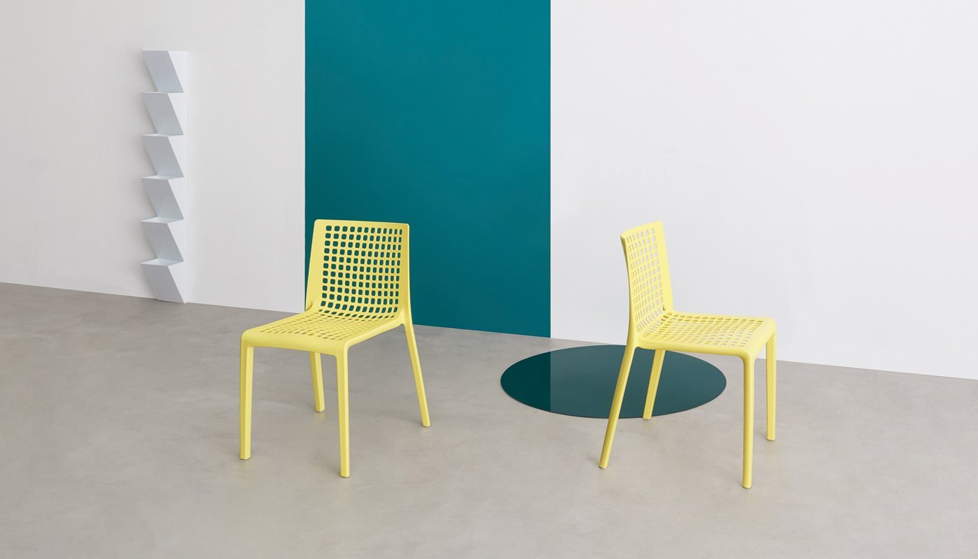 288 is the number of holes which create and characterise it.A gentle design with graceful lines, a clean, functional project by Pocci + Dondoli. Nylon stacking chair moulded with“air-moulding” technology, it is also suitable for outdoor use.