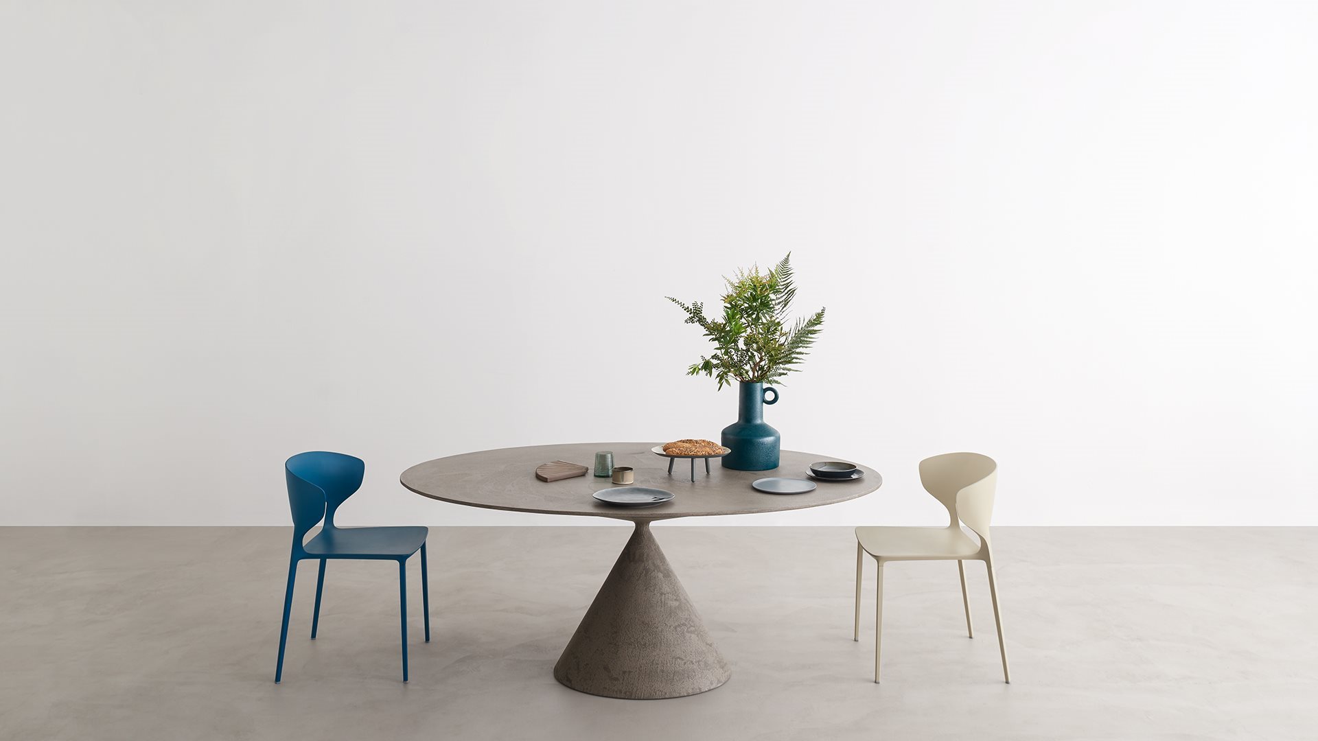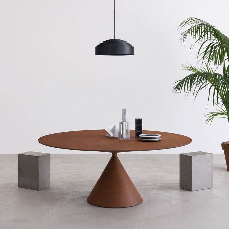 More than a table, a sculpture, a perfect union of beauty and harmonious proportions. Presented at the 2015 Milan Furniture Fair and winner of different awards: Iconic Design Award 2015, Good Design Award 2016, Red Dot Award for the 2016 Product Design category. The meeting of two volumes achieves a perfect balance of one over the other.Clay is a table-sculpture born from the meeting of two volumes:the top and the base, balanced one on the other, experience the bold support of a section reduced to a minimum.The Clay table, where the pleasant combination of geometric volumes creates an essential yet special product. Here it is in oval version, with elliptical base and top.Two cones of different shapes meet at their opposite vertices: defying gravity in an apparently unstable equilibrium, but giving shape to the most classic of round tables. Clay is the exception that becomes a rule, like design.