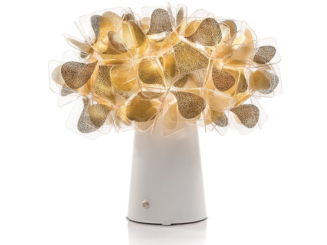 This table lamp inspired by nature is wireless and fully rechargeable, effortlessly moving from place to place, inside to outdoors. A bouquet for al fresco dinners, a glow by the bath, a welcome to another new day, or the perfect centerpiece for a table that exudes unique elegance. A dimmable LED system lasting up to 60 hours can be tailored to every place and every occasion. For Clizia’s first decade, Mama Non Mama shines in a powerful, luxurious combination of black and gold, with a contrasting matte base.