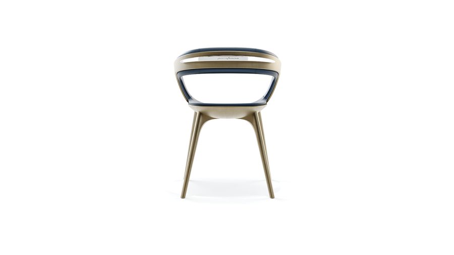 Sedia con scocca e gambe verniciate in bronze 100M, ottone 104M, ottone dark 105M o titanium 101M. Rivestimento interno in pelle o tessuto. Maniglia sul retro in acciaio lucido con logo pininfarina.