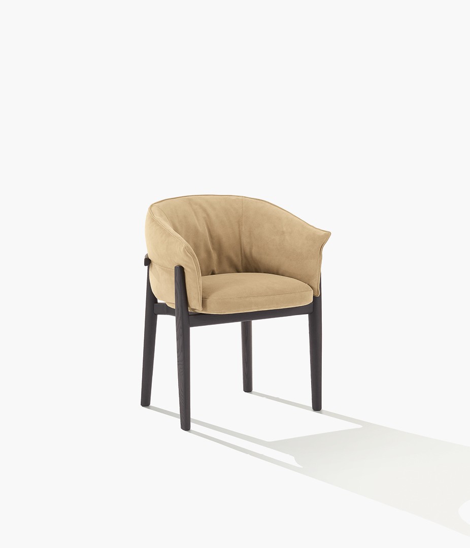 Jean-Marie Massaud 用一把像扶手椅一樣舒適的椅子重寫了用餐哲學。 Leopold 椅子由包裹在基本木質結構中的包覆墊組成,將歡樂時光轉變為愉快而優雅的體驗。