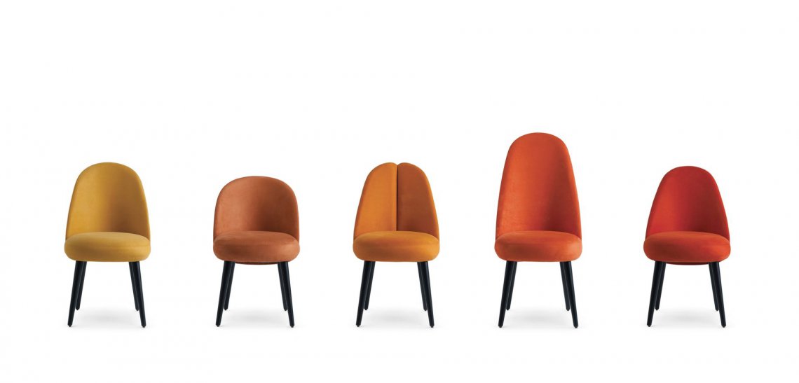 Cinque schienali diversi con una stessa base... ecco una "famiglia" di sedie che rappresenta le differenti morfologie umane: una base comune ma mai esattamente gli stessi. Tra gli altri geni condivisi, un confort avvolgente ed un non so ché di retrò!