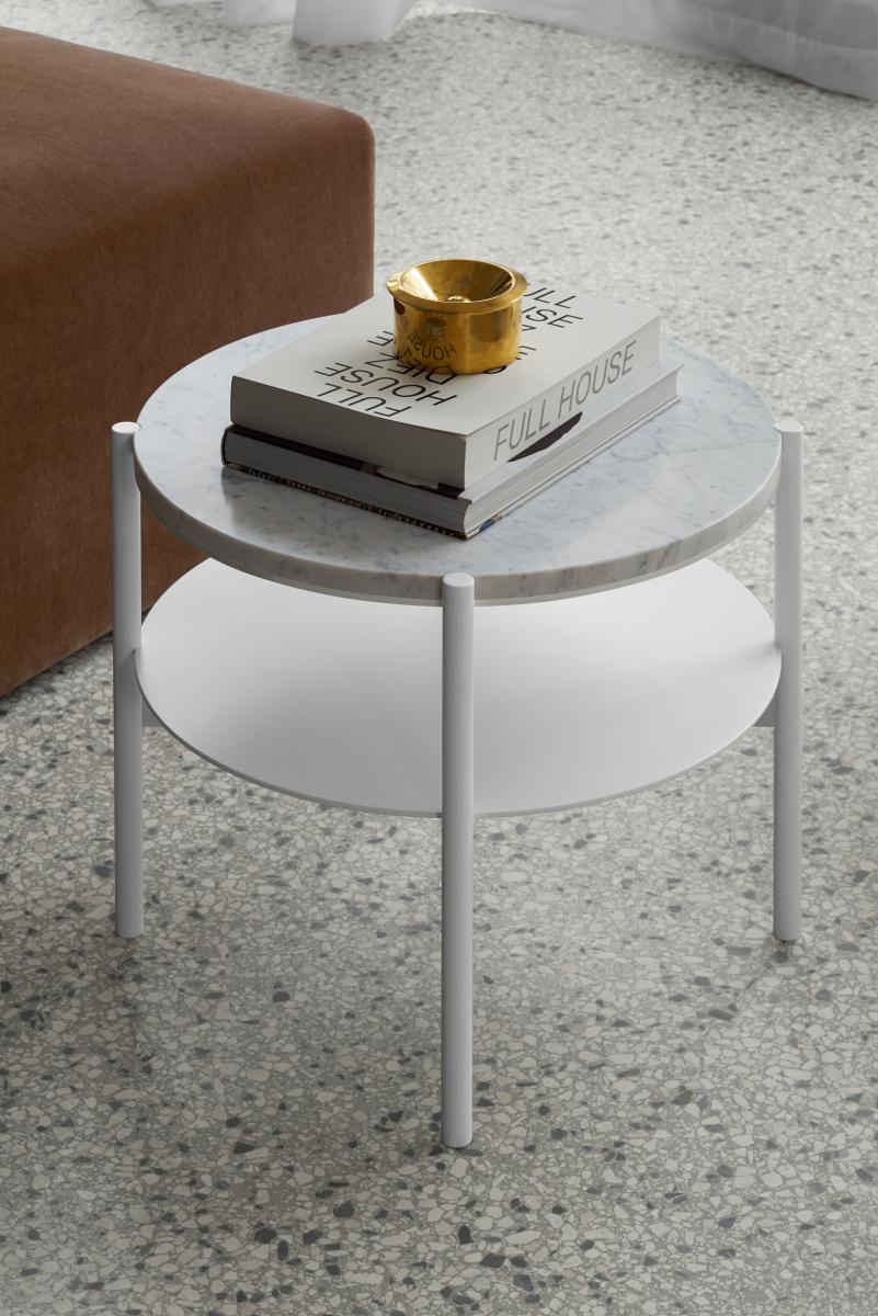 With its clear structural concept and circular form, ELBE II is a versatile side table suitable for private as well as contract situations. Available in signal white with table top in Bianco Carrara, the side table ideally complements bench ELBE III, which was also designed for concert hall Elbphilharmonie by Herzog & de Meuron architects.