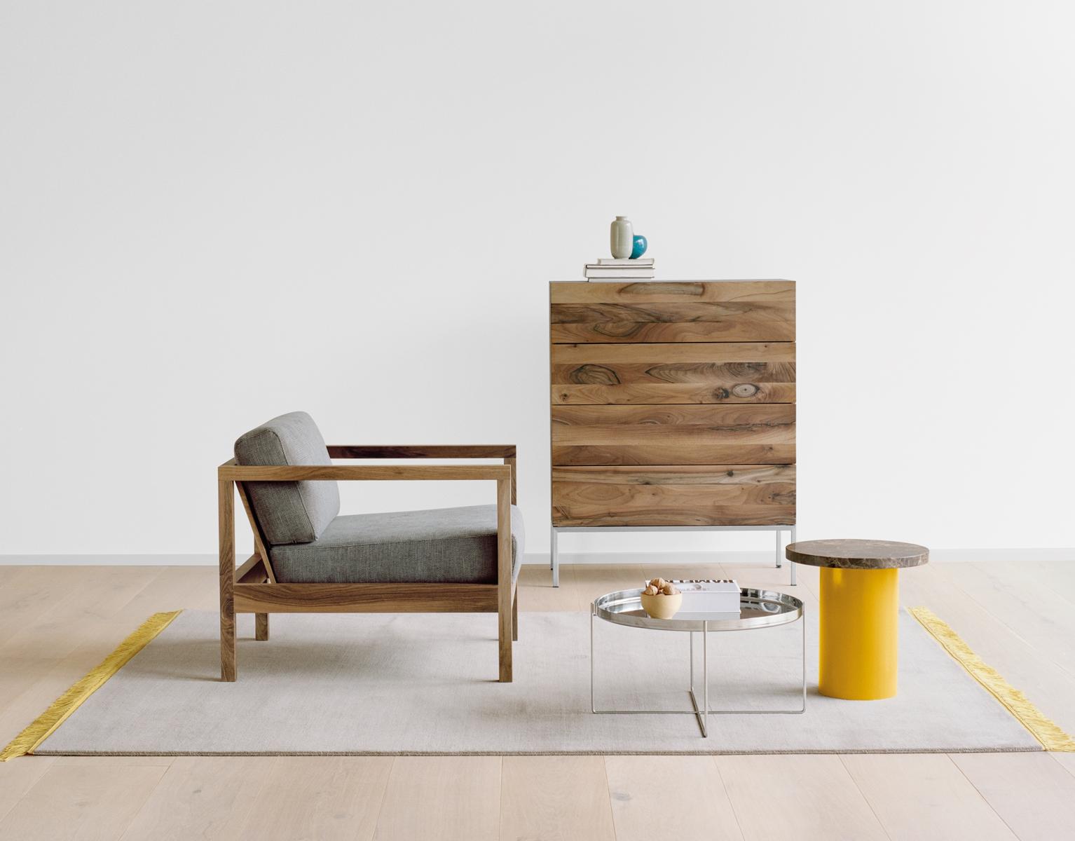 Reminiscent of ornately detailed oriental tea services, HABIBI as a tray or side table is a precious piece offering elegant possibilities for combination. The tray HABIBI in combination with the base can be used as an independent side table with generous diameters and optional heights available in polished brass, copper and stainless steel. Each piece is entirely unique, handmade and truly valuable, offering versatile use as the tray can be removed from the base and used as such on its own. Untreated by chemicals, natural oxidation processes create a beautiful patina over time, unless interrupted by applying conventional metal polishes. The surfaces are not lacquered. The endearing tray and side table HABIBI is additionally available in powder-coated aluminium in the colours signal white and jet black. The tray HABIBI is delivered as one piece whereas the side table with the base is delivered in two pieces.