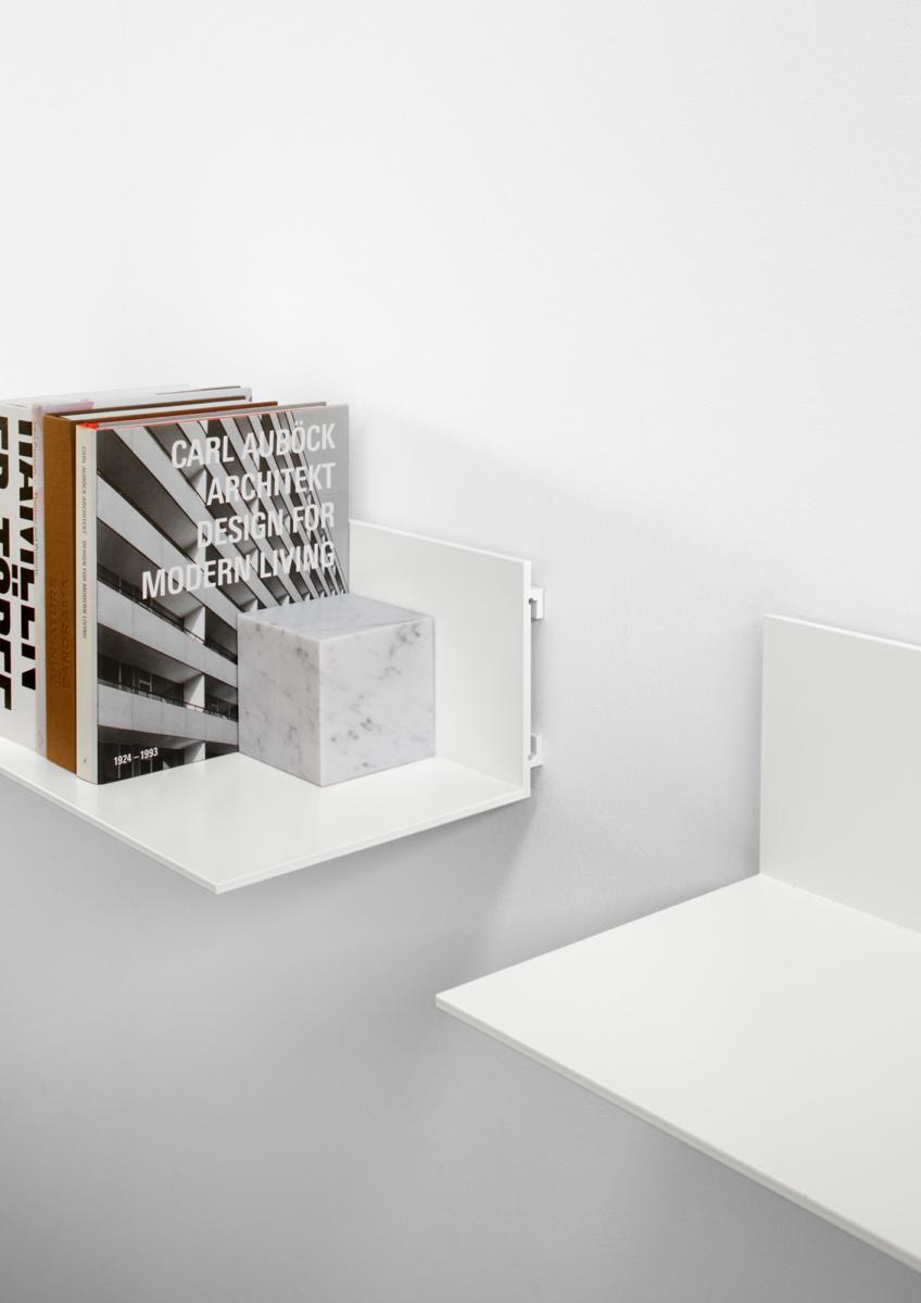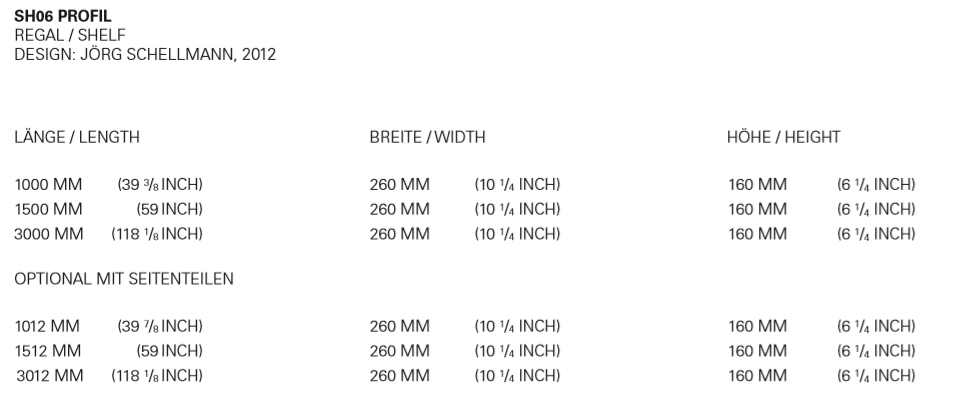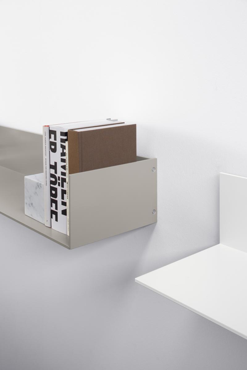 Evoking associations with minimal art, the wall-mounted shelf PROFIL by J?rg Schellmann bears a distinct sculptural appeal. The aluminium shelf is produced in one piece by way of extrusion; a process used to create objects of a continuous cross-sectional profile, forming finished parts with excellent surface quality. Available in powder-coated aluminium in signal white, silk grey or jet black and optionally available with or without side panels, PROFIL offers multiple colour and composition solutions and is available in three lengths.
