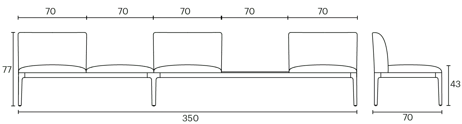 Kubika is a modular seating system that allows to create unlimited configurations through individual modules and accessories that are easily assembled. Its versatility and sophisticated design with simple lines allow adapting to any environment and need. It consists of seats with or without backrest, intermediate arms and table dividers. All the seats can be upholstered in all range of finishes and they are placed in a lacquered steel frame connected on different aluminum legs.