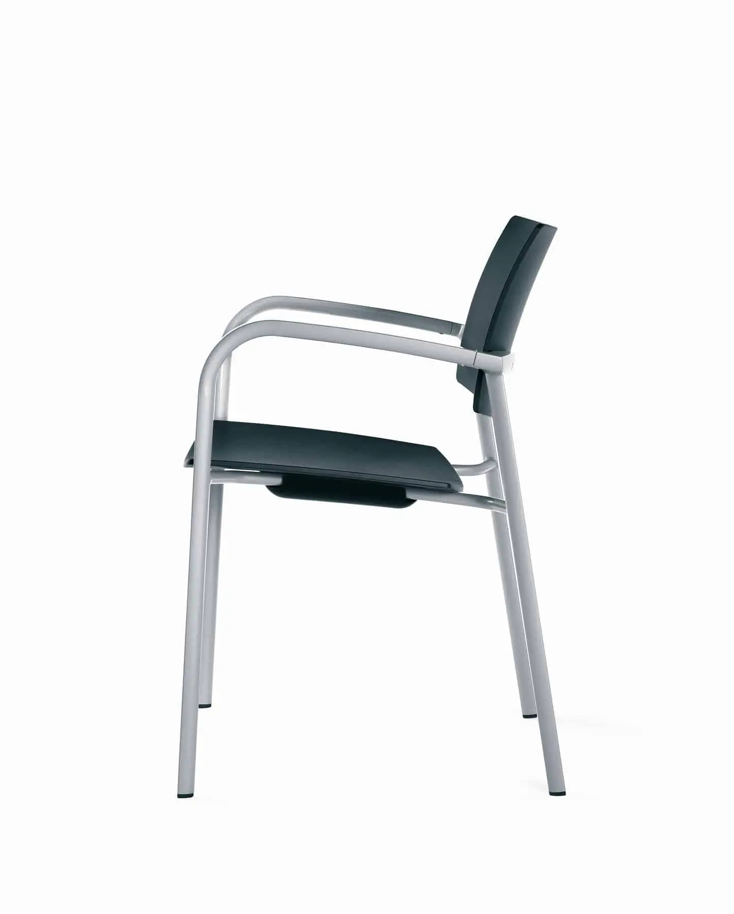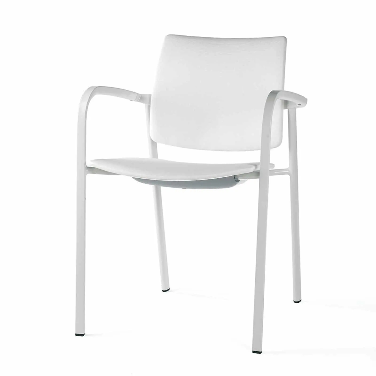 The 4-legged structure of Bio chair is made of steel chromed or lacquered in any of our colours and the seat and backrest are produced in polypropylene which can be upholstered in a broad range of fabrics. The sturdiness of this model means it easy blends into high-traffic spaces like waiting rooms, hospitals, and the public and contract sector.
