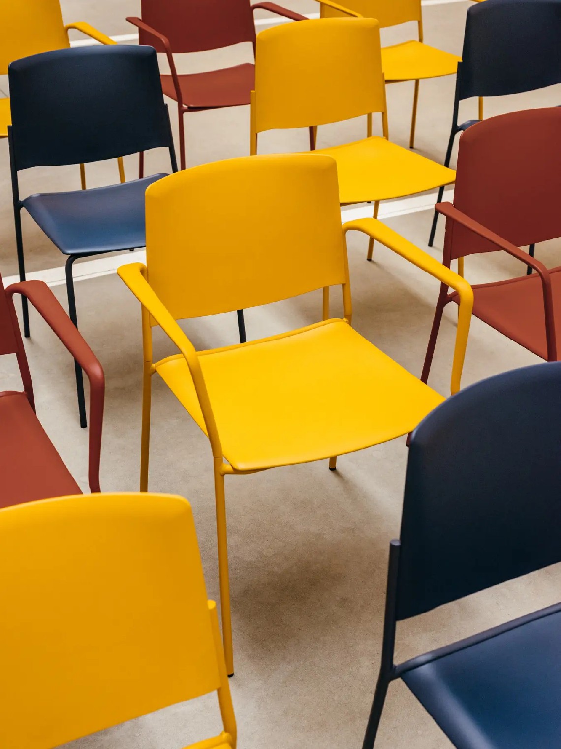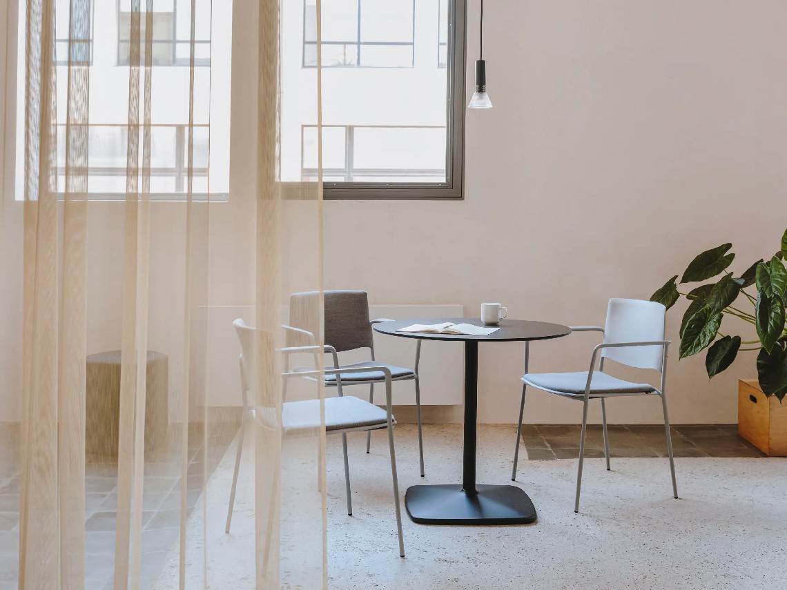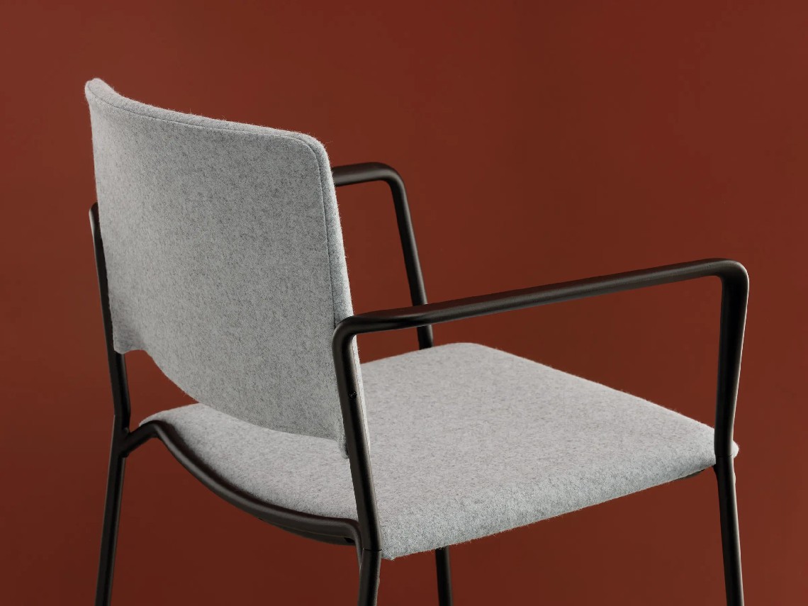 Ema 4L armchair is strong and lightweight and allows to stack up to 30 units, which makes it perfect for all kind of spaces, in special for contract sector. The 4-legged steel structure and the aluminium armrests can be chromed/polished or lacquered in any of our colours and the seat and backrest are available in polypropylene or upholstered. Besides, it has an upholstered seat pad available, which is very useful for multipurpose or crowded spaces, improving stacking by causing less friction than the full upholstery version. In this case, the stackability reaches up to 20 units on the trolley and 15 units on the floor.