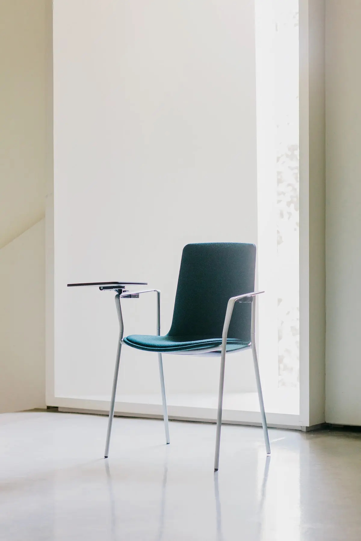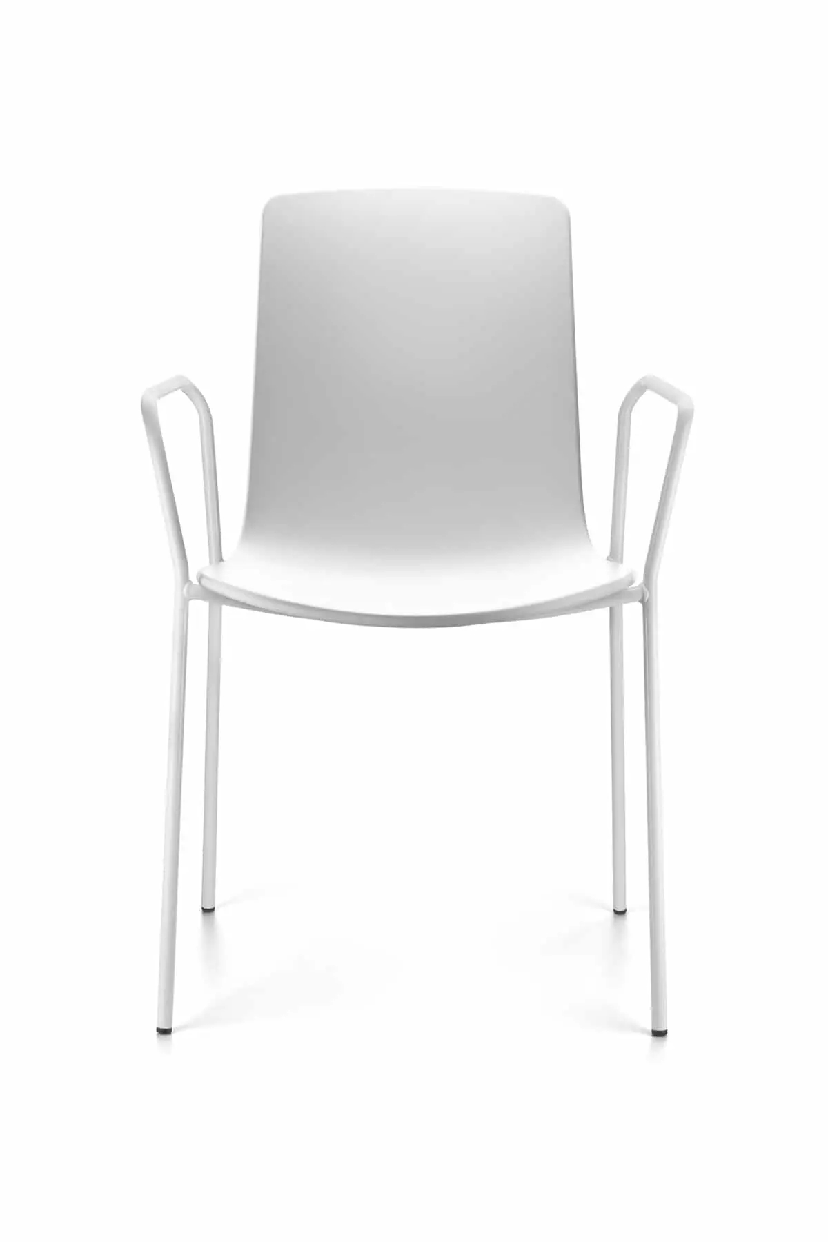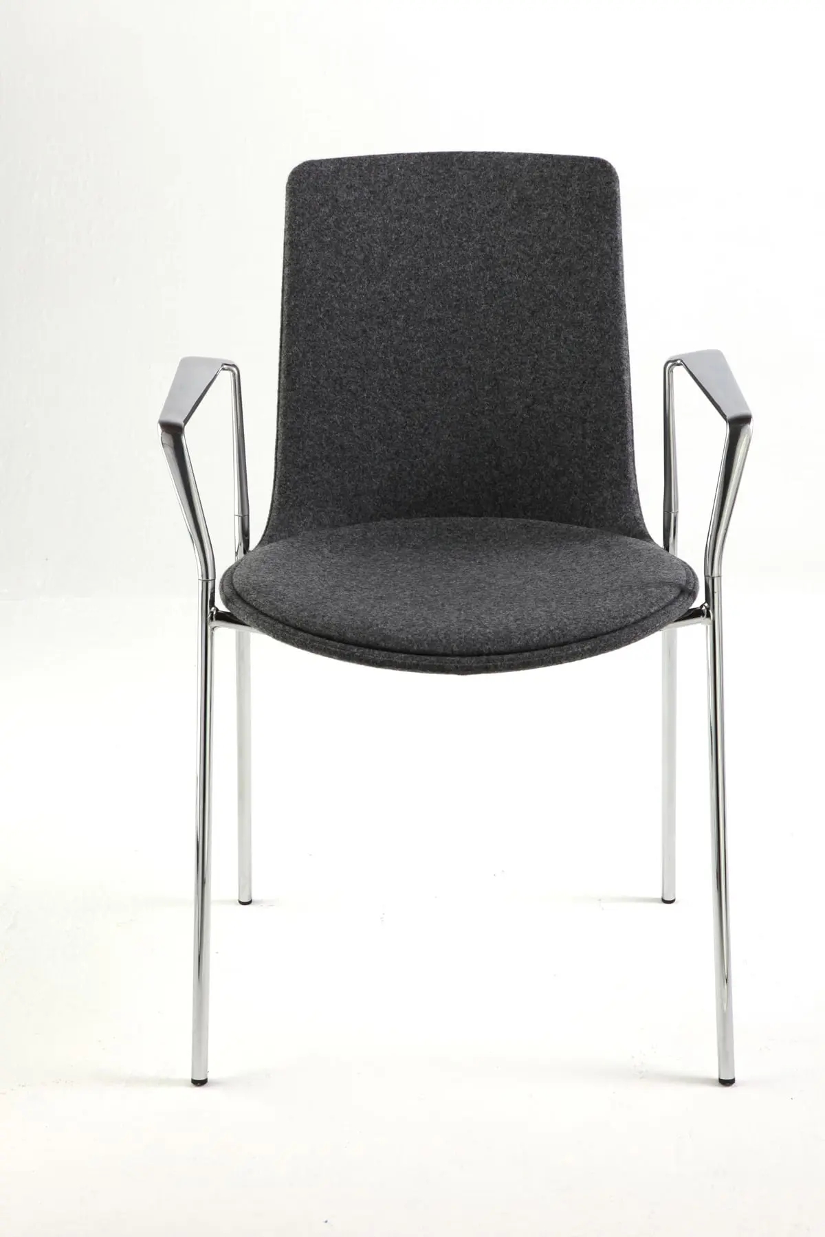 Lottus High chair has a 4-legged steel structure that comes in chrome or lacquer in any of our colours and it has a broad range of finishes available: polypropylene shell with or without polypropylene or upholstered seat pad, or fully upholstered one. Furthermore, this model has steel, aluminium or wing arms.