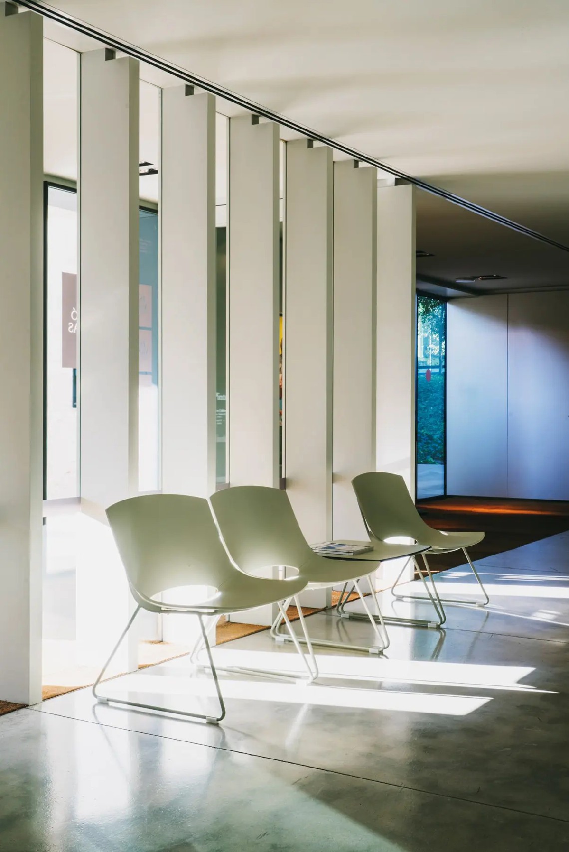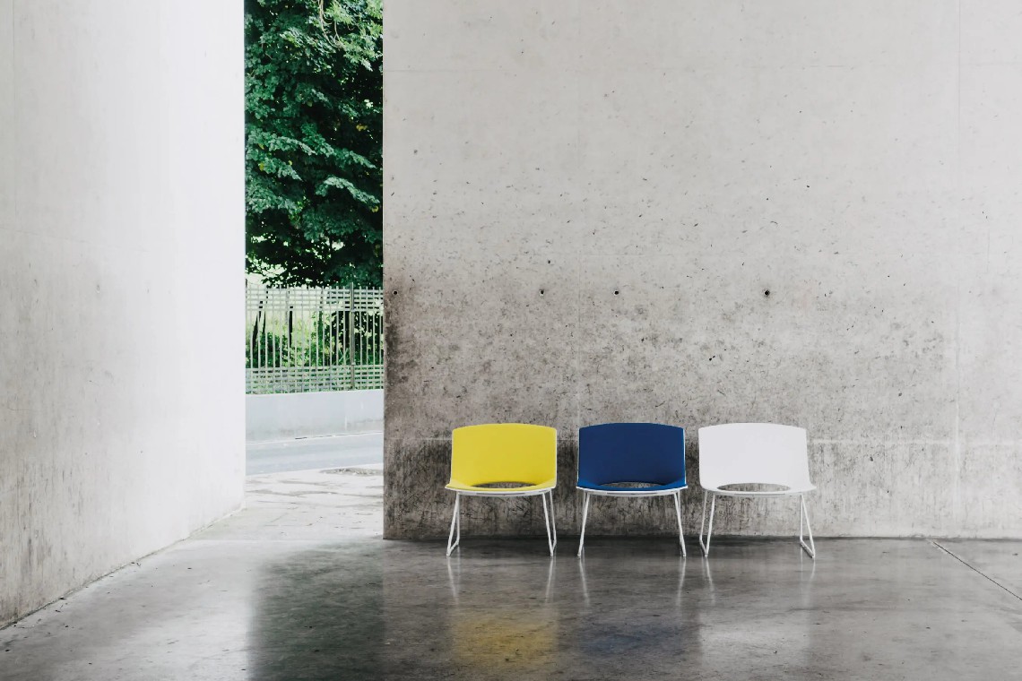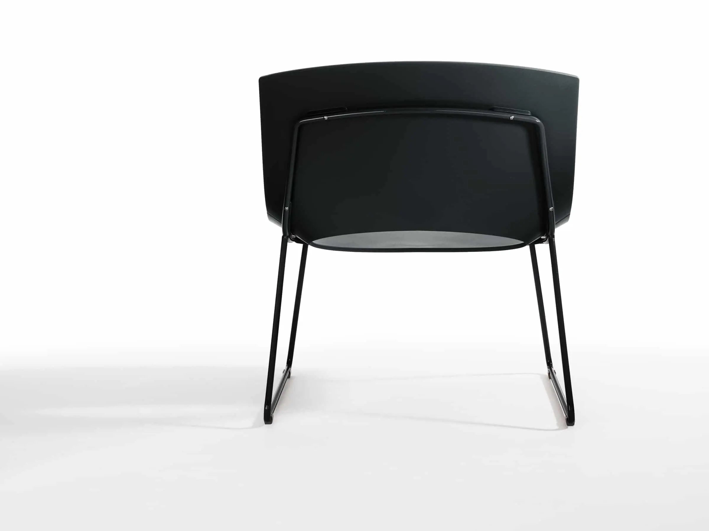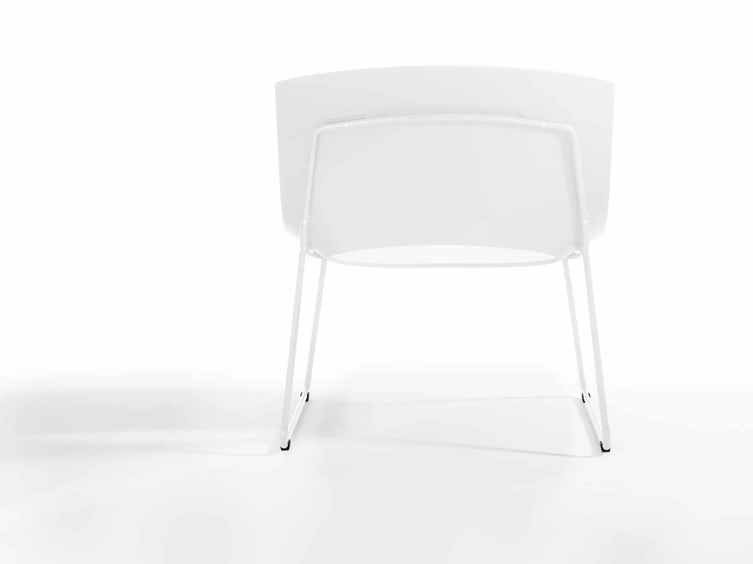 This Oh! lounge has a sledge steel structure and it comes in chrome or lacquer option in any of our colours. The base is combined with a polypropylene shell that can have interior upholstery in any of our many fabrics.