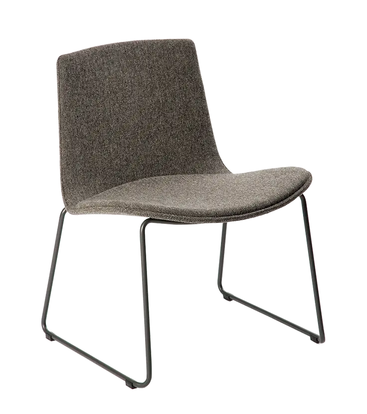 This Lottus Lounge is made with a sledge steel structure which comes in chrome or lacquer option in any of our colours. The shell is made of oak or birch wood and can be combined with an upholstered seat pad or fully upholstered.