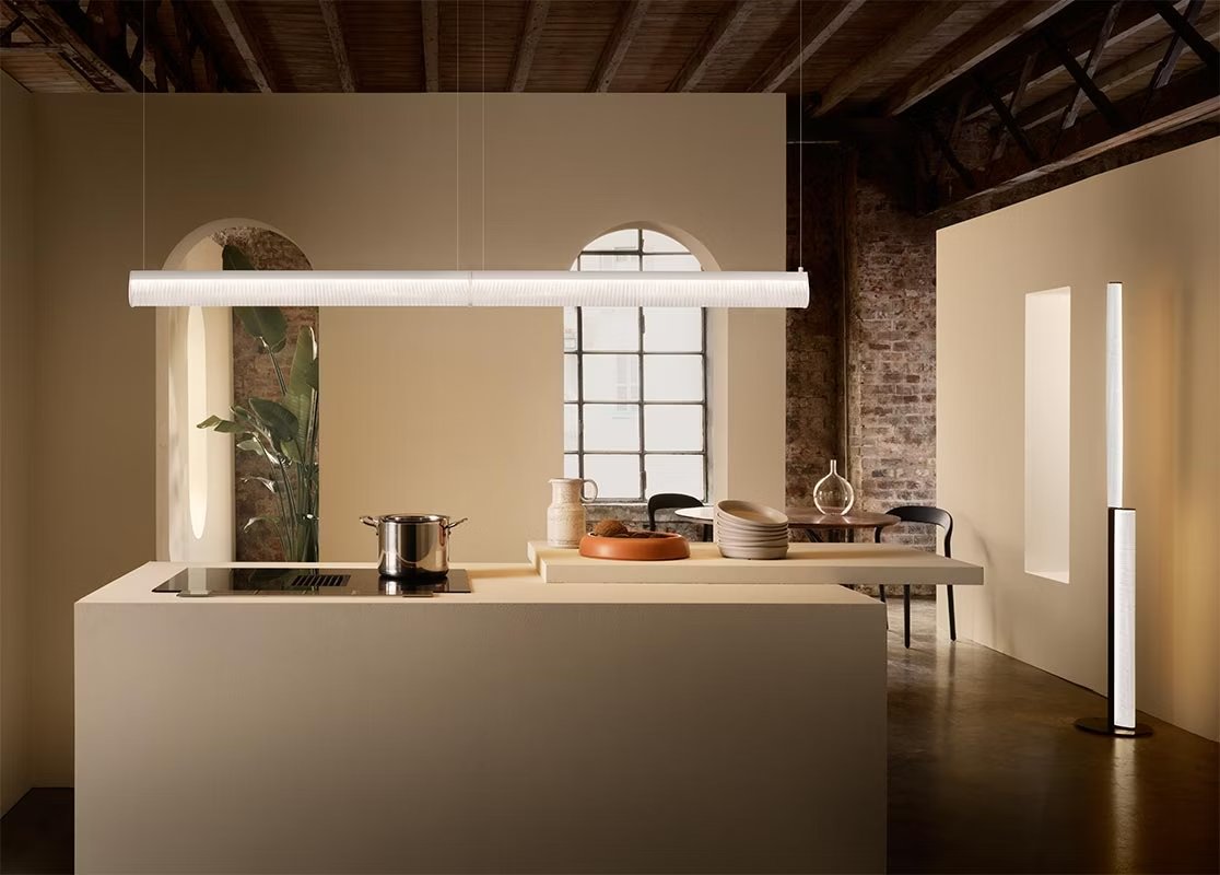 Modula is a versatile collection that creates unexpected plays of light. Columns from Medieval cloisters inspired a Plissé effect, and sparkling stones are reflected in a Crystal effect, each taking a lamp that is outwardly minimal to an explosion of creativity, where even, linear light liquifies throughout.