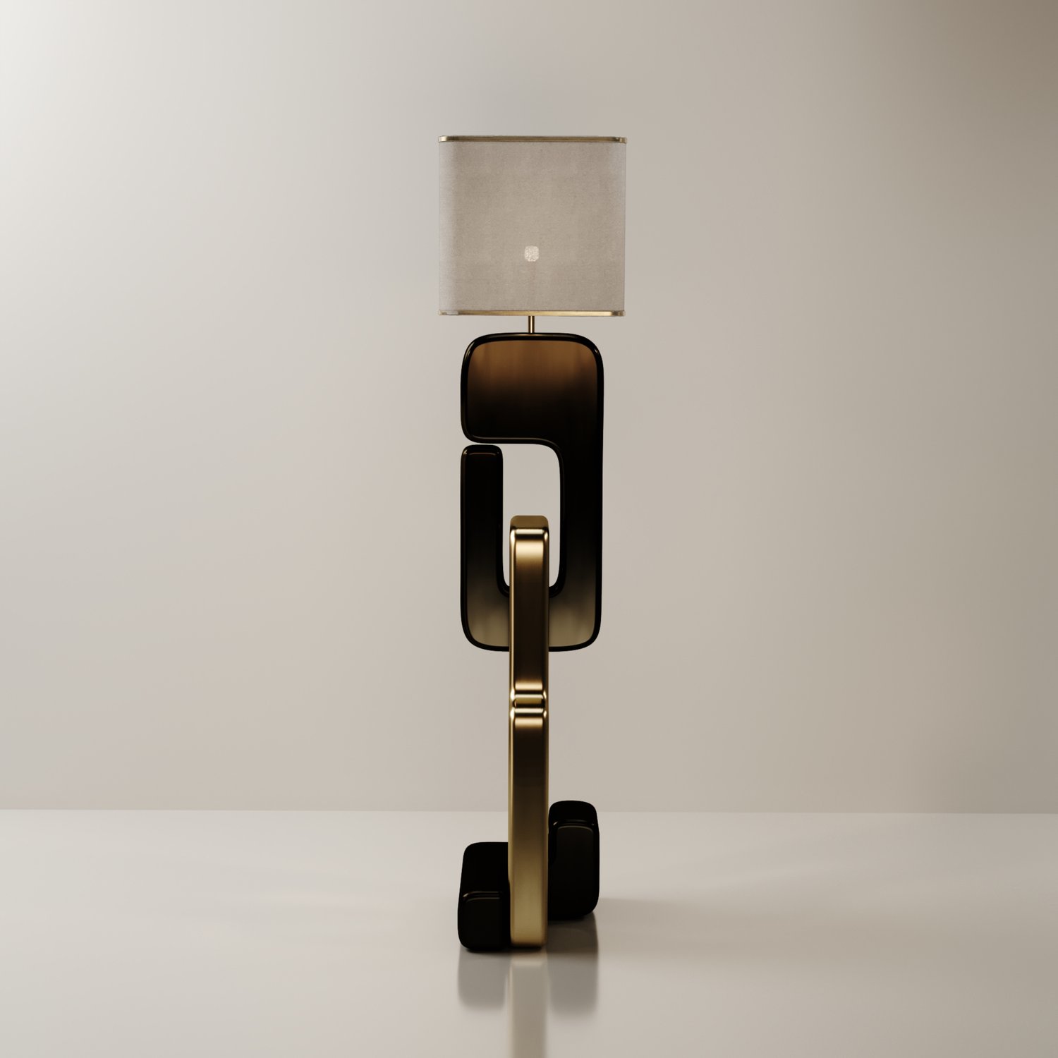 The Apoli floor lamp by Kifu Paris is both dramatic and organic it’s unique design. The ethereal geometric and sculptural base is made entirely from bronze-patina brass. This piece is designed by Kifu Augousti the daughter of Ria and Yiouri Augousti. Part of the Apoli Capsule Series.