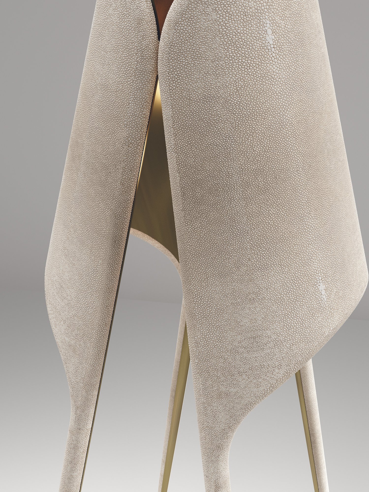 The piece is inlaid in a mixture of cream shagreen and bronze patina brass.