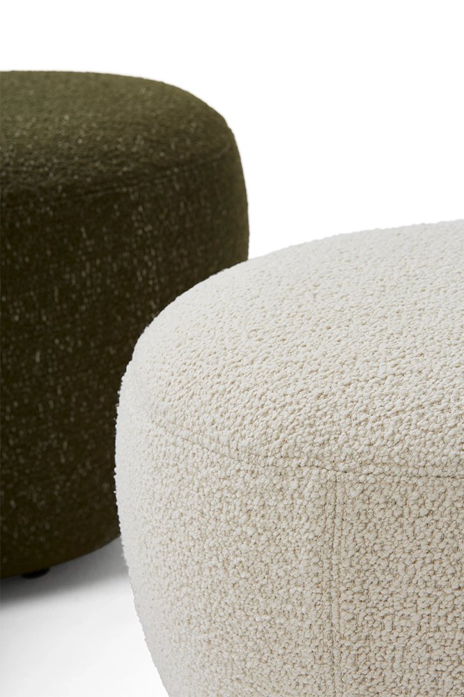 Reminiscent of sunny summer afternoons and the slow passing of time. Afternoons is an outdoor lounge set featuring an armchair, sofa, bench and oval coffee table with a choice of top in Pietra Lavica Smaltata, Pietra Bianco or Grigio Pece. Supported by an outdoor painted aluminium frame upholstered with natural-coloured, hand-woven PVC, the chair collection is padded with cushions in quick-drying polyurethane foam that fit perfectly into the silhouette. The collection is completed by a pouffe with Polimex and polyurethane frame and upholstered with a water-repellent cloth.