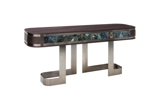 Consolle coordinata – a completamento del dining room – con il tavolo Paul e le sedie Gatsby. Elegante cura del dettaglio. cassetti con frontale personalizzabile con pietre preziose o legno.