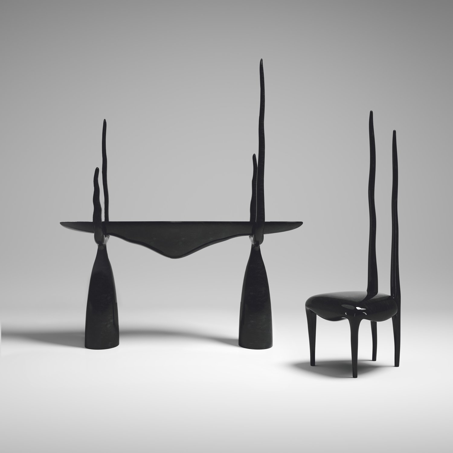 This listing is for the Sylvie Console and Sylvie Chair by R&Y Augousti in Black Pen Shell